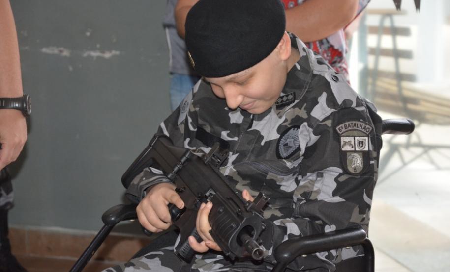 Policiais militares do 5º Batalhão de Polícia Militar (5º BPM), pertencente ao 2º Comando Regional de Polícia Militar (2º CRPM), receberam um menino que sonha ser policial militar antes dele passar por uma cirurgia. A surpresa aconteceu na quarta-feira (26/06), na companhia de Choque do batalhão, após um pedido da ONG Viver, que atende crianças com câncer.
