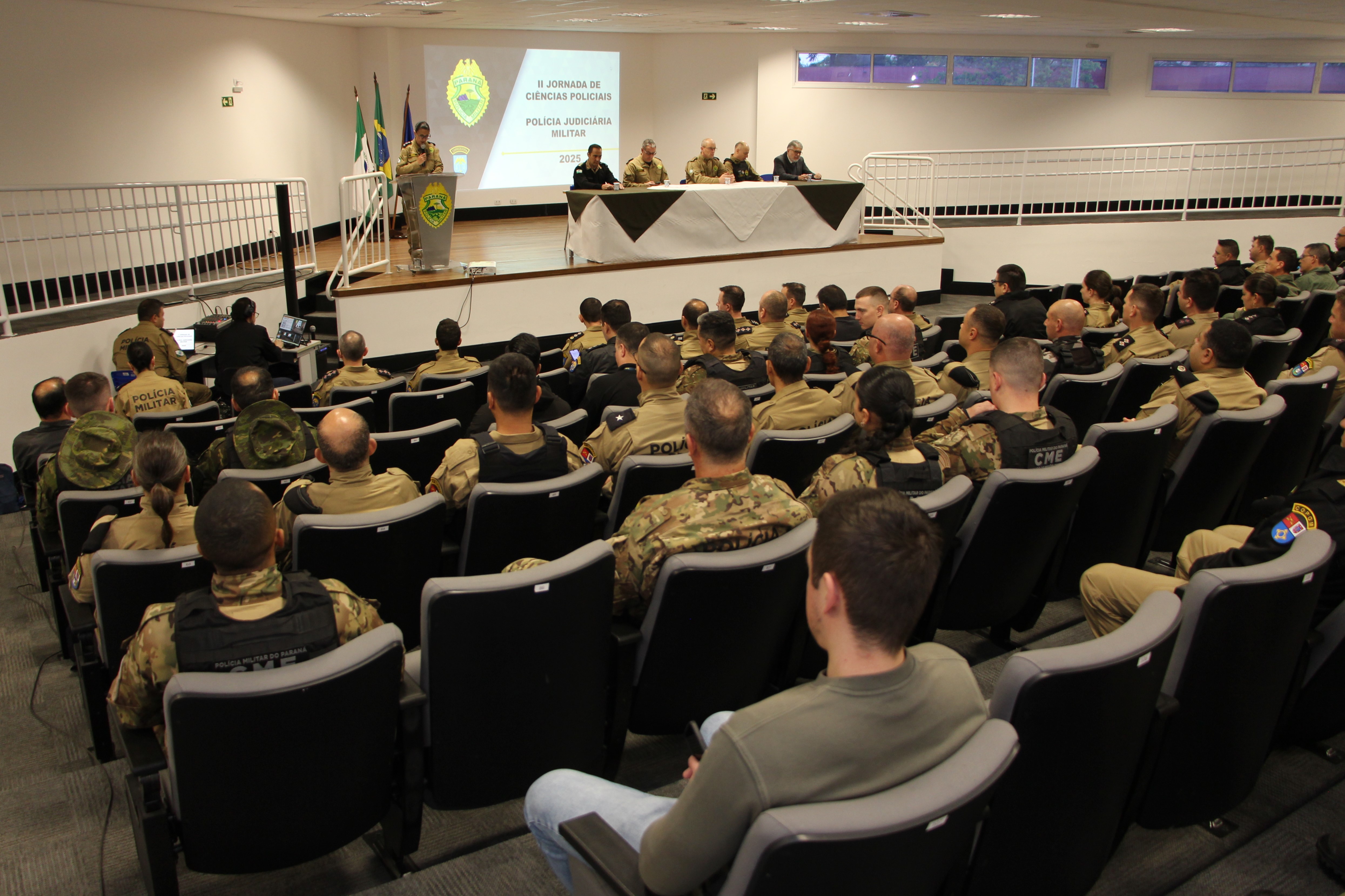 Realizada em cumprimento ao Plano Estratégico da PMPR 2025–2027, a jornada visa fortalecer o conhecimento, a integração e a excelência nas atividades de Polícia Judiciária Militar, fundamentais para a preservação da legalidade, da disciplina e da imagem institucional da corporação. As palestras são transmitidas para todas as unidades da PMPR, ampliando o alcance do aprendizado.