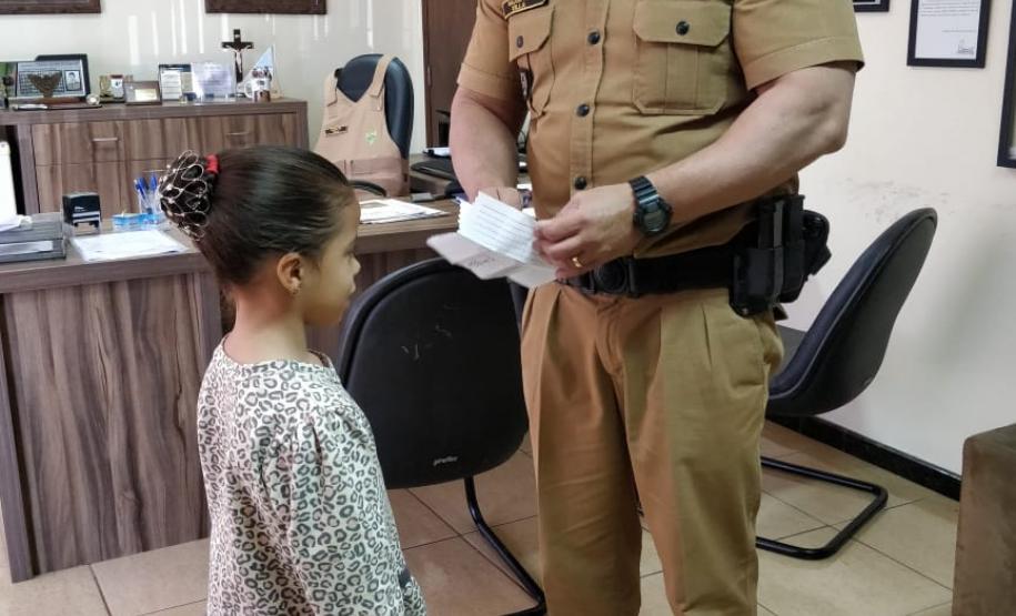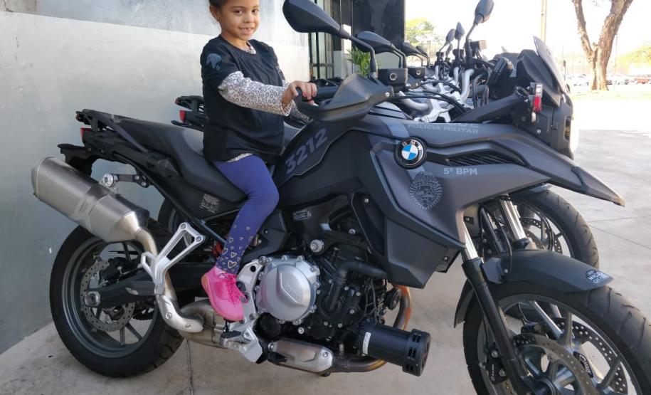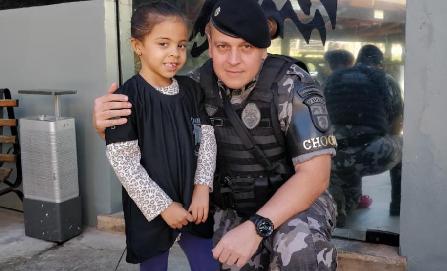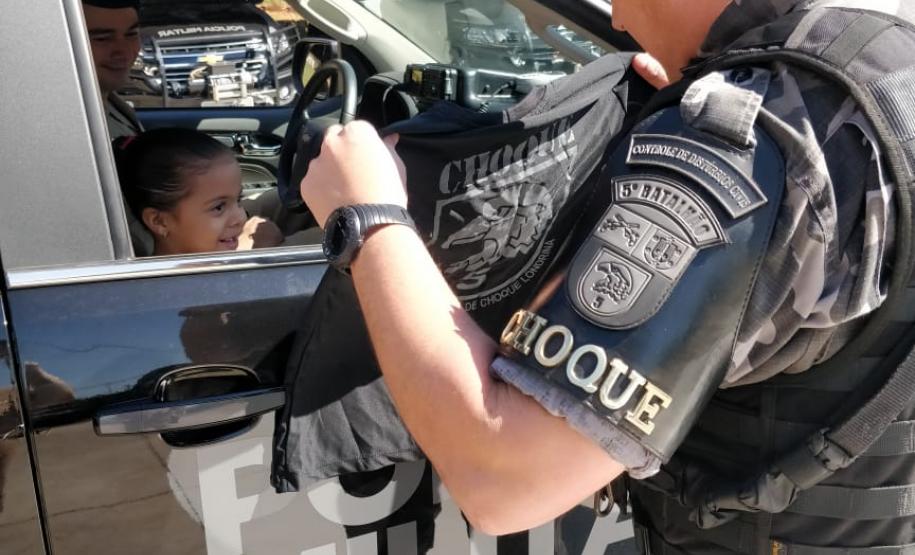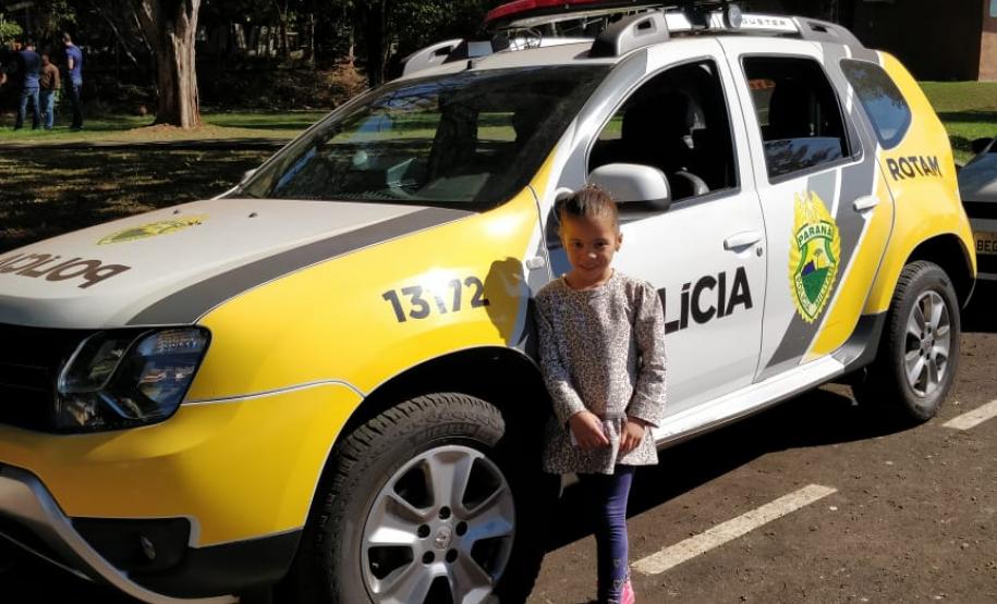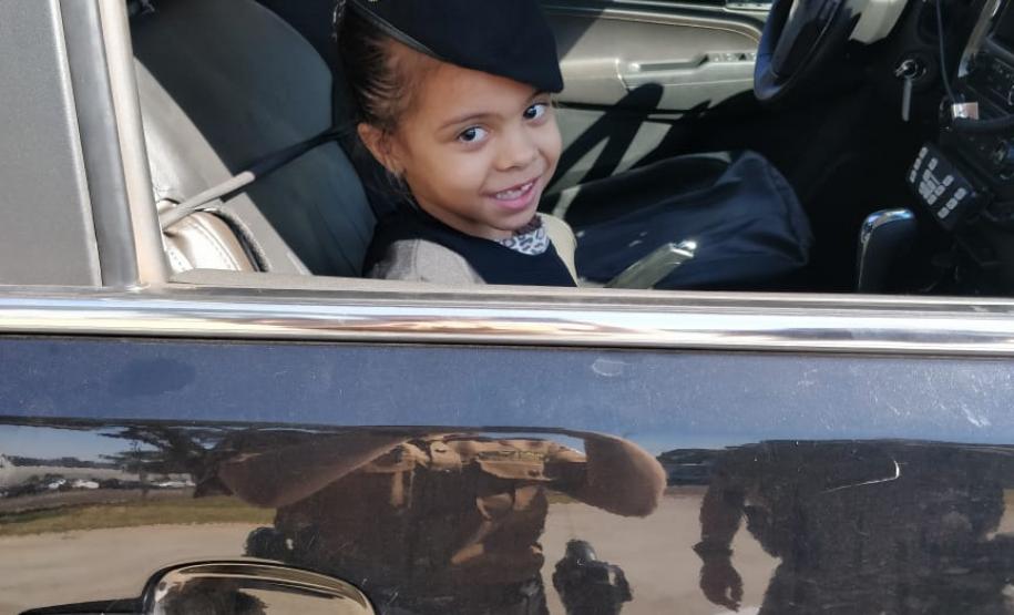A criança conheceu o batalhão e tirou fotos na viatura, onde ficou encantada com a Companhia de Choque, e foi presenteada pelos policiais com uma camiseta. Evelyn ainda entregou uma cartinha que tinha escrito para o comandante da unidade.