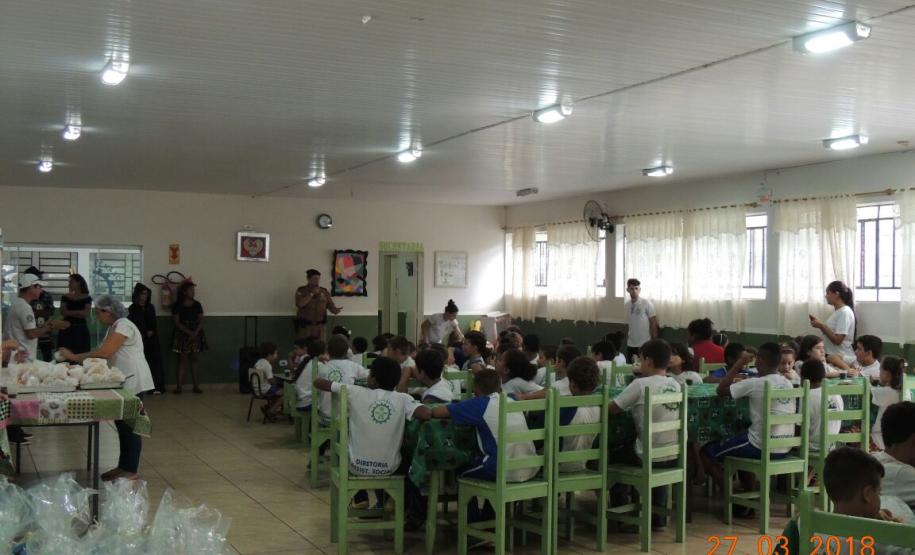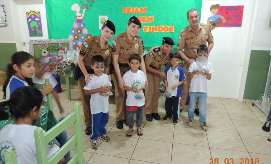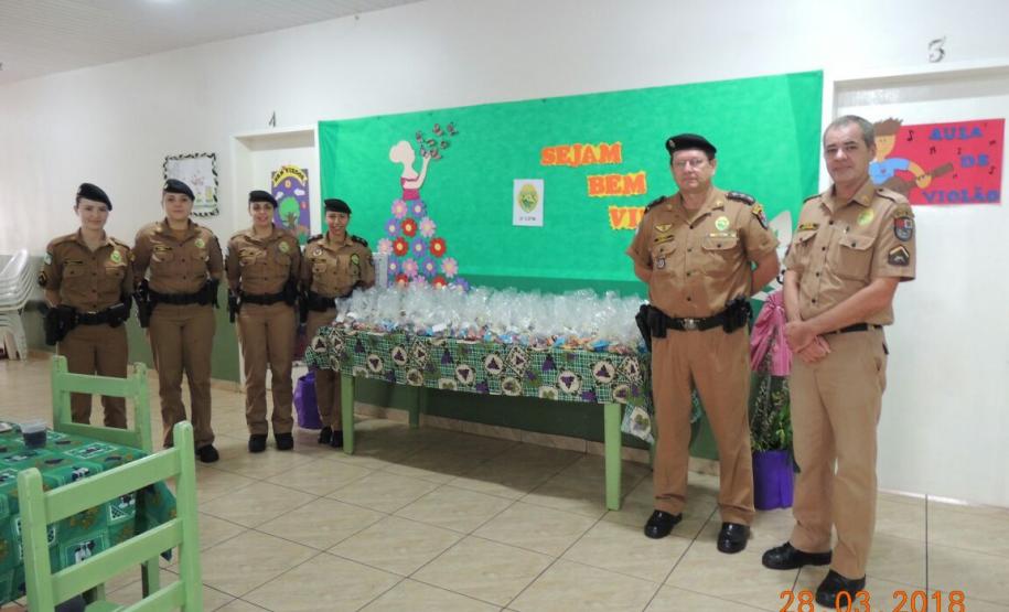 Na região Centro-Norte do estado, a 6ª Companhia Independente de Polícia Militar (6ª CIPM), pertencente ao 2º Comando Regional da PM (2º CRPM), entregou chocolates para 227 crianças de Ivaiporã (PR) em comemoração a Páscoa. O grupo faz parte de um projeto social e, além de receber os doces, também se divertiu com brincadeiras e atividades promovidas pela Polícia Militar.