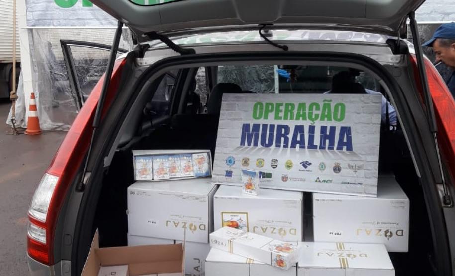 Em uma abordagem, no âmbito da Operação Muralha, policiais do BPFron em conjunto com a Receita Federal do Brasil e com o Exército Brasileiro, apreenderam 228 pacotes de essência de narguilé em um veículo. O motorista, um homem de 51 anos, foi encaminhado, juntamente com o apreendido, à Receita Federal para as medidas cabíveis.