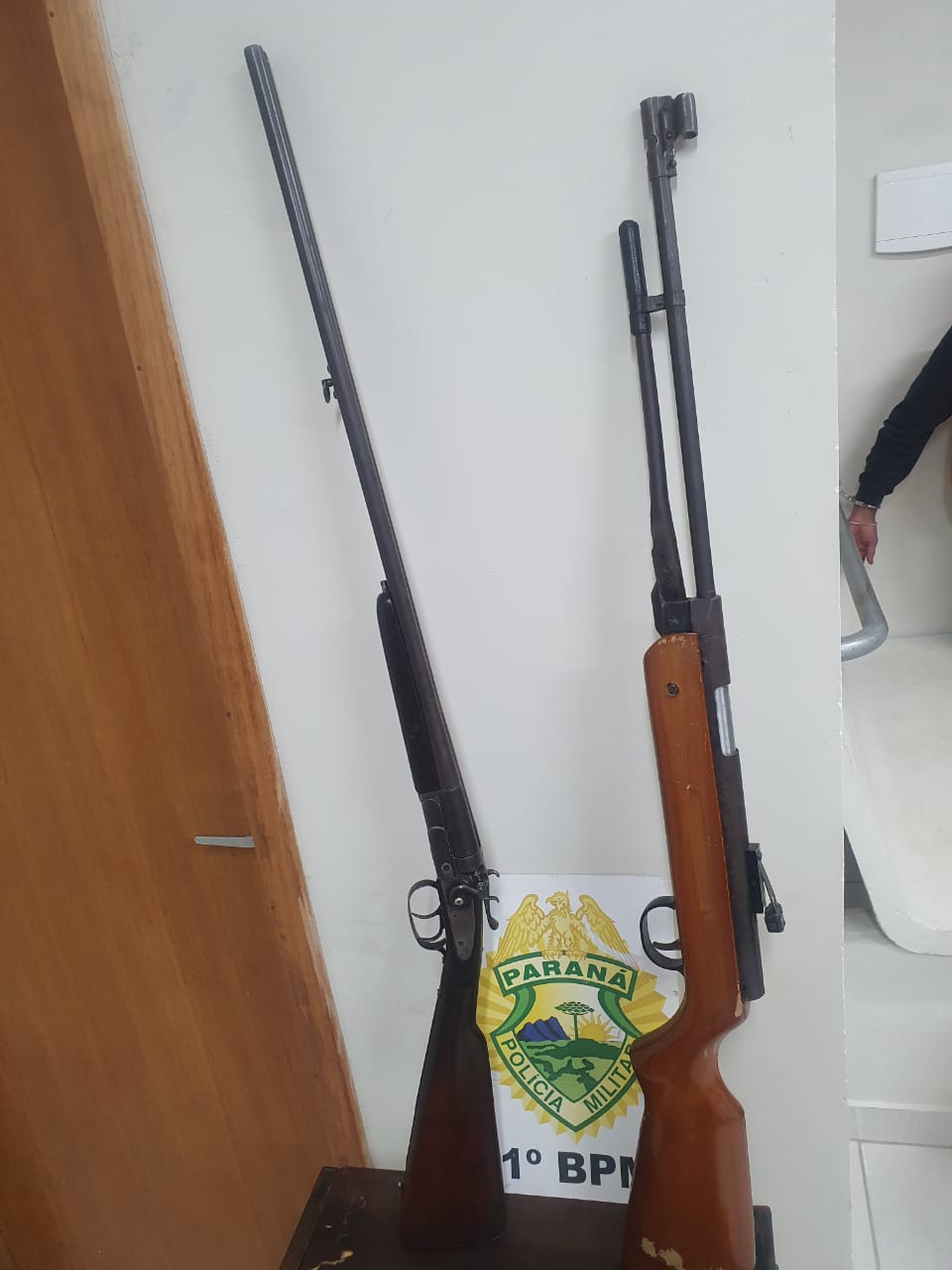 Em outra ocorrência, na mesma cidade, os policiais militares foram dar atendimento a uma ocorrência de violência doméstica e, quando localizaram o suspeito, um homem de 29 anos, encontraram duas espingardas. Sendo assim ele foi preso e encaminhado, juntamente com as armas, para os procedimentos necessários.