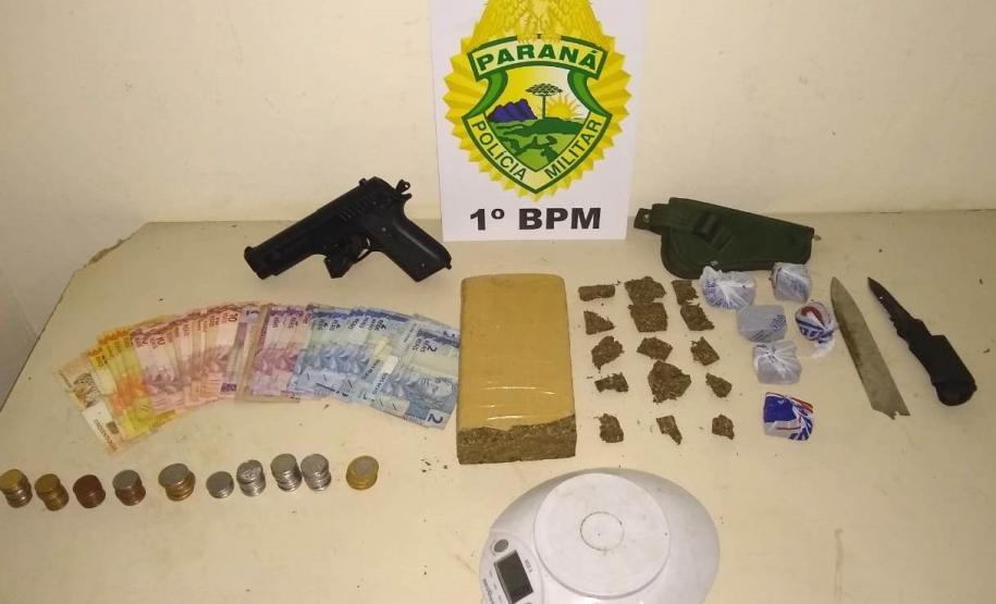 Na primeira ocorrência, foi por volta das 19 horas, no bairro Jardim Carvalho, em Ponta Grossa, policiais militares abordaram três homens em um veículo Chevrolet/Chevette. Com eles foram apreendido uma arma de brinquedo, e duas porções de maconha. Informações colhidas durante a ação policial, levaram a PM até um imóvel na região, propriedade de um dos rapazes, onde foi apreendido quase 1kg da mesma droga, além de dinheiro e uma balança utilizada para a pesagem da droga. Diante da situação, os homens foram encaminhados à Delegacia para os procedimentos cabíveis.