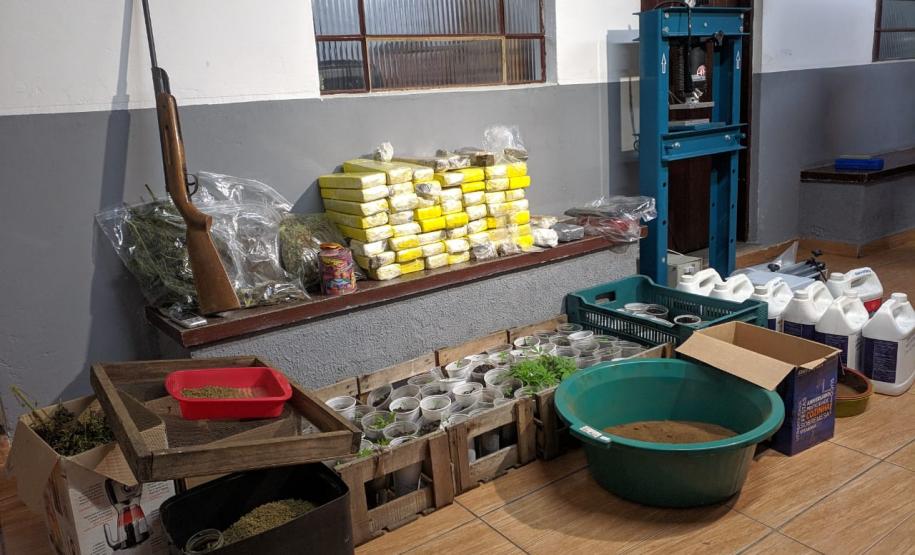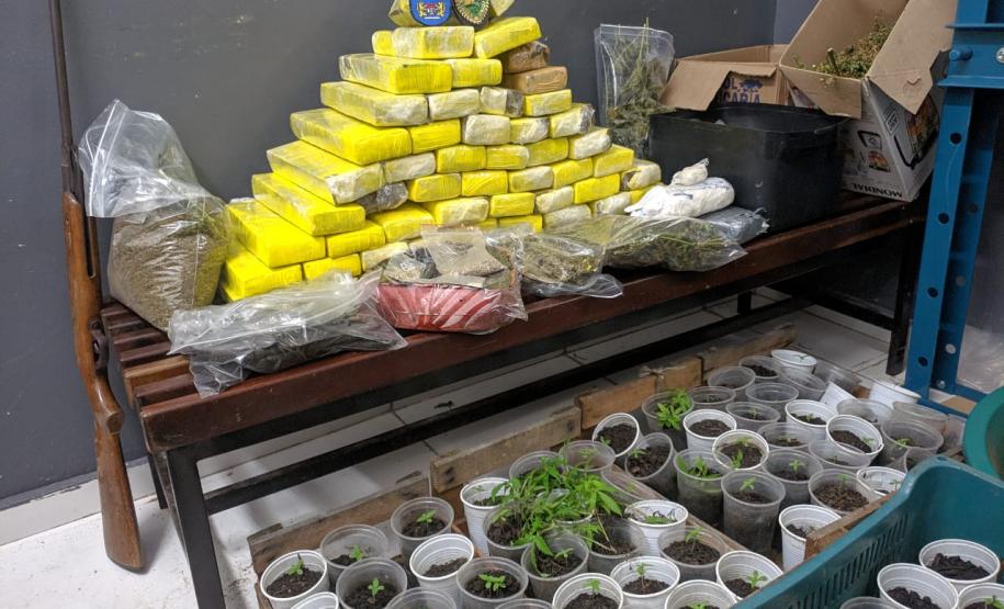 No endereço relatado aos policiais, um homem acabou preso com 57 tabletes e 68 pés de maconha, uma certa quantidade de haxixe e ainda vários anestésicos de cavalo. Ele, de acordo com o que foi constatado no sistema interno da Corporação, tem um mandado de prisão em seu desfavor por homicídio. Ao fim da ocorrência, todos foram encaminhados à Delegacia, bem como o material apreendido, para os procedimentos de praxe.