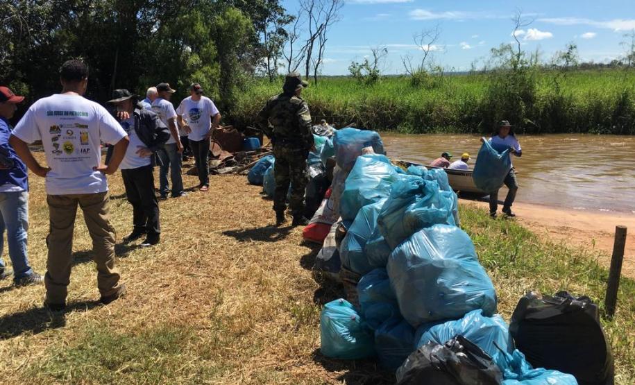 O Rio Paraná foi alvo da ação de educação ambiental “Rally do Lixo” no último sábado (23/02) e os policiais militares do Batalhão de Polícia Ambiental Força-Verde (BPAmb-FV) participaram do recolhimento de lixo das margens do rio e também fizeram abordagens educativas para evitar irregularidades a embarcações e veículos que circulavam pelas imediações das cidades de Altônia, São Jorge do Patrocínio, Alto Paraíso, Icaraíma e Querência do Norte, no Noroeste do estado.