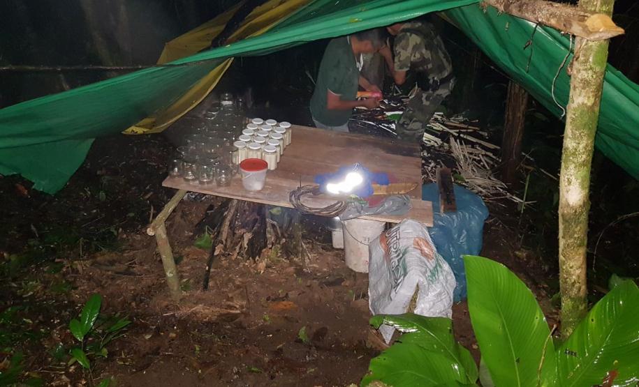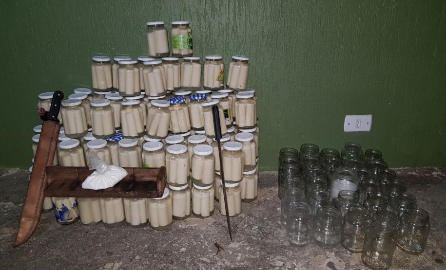 O homem teria contado para os policiais o local onde ficava a fabriqueta clandestina, sendo deslocado até o endereço. Lá foi encontrado um barraco feito de galhos e coberto por plástico, no interior do qual foram apreendidos mais 15 vidros de palmito cheios e 31 vazios, além de medidor para corte, facão e ácido cítrico.
