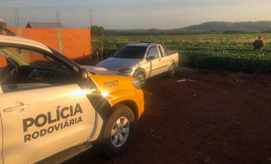 Os policiais militares da Rondas Ostensivas Tático Móvel (ROTAM) da 3ª Companhia do Batalhão de Polícia Rodoviária (BPRv) faziam uma operação de fiscalização na PR 317 quando foi visualizado um Fiat Strada que fez o retorno para evitar a abordagem. Foi iniciado um acompanhamento tático. O suspeito acessou uma área de plantação de soja e fugiu a pé, abandonando o carro.