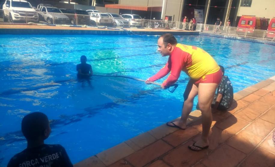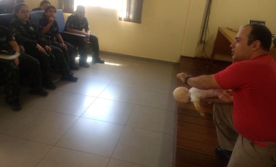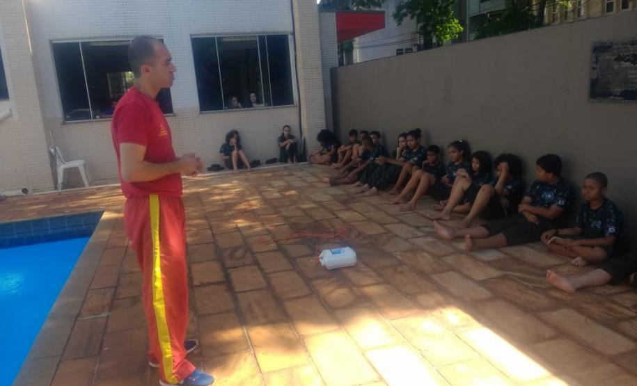 Acompanhados pelos integrantes da 3ª Companhia do Batalhão para aprenderem sobre técnicas de desobstrução de vias aéreas e outros procedimentos de primeiros socorros, combate a incêndio e salvamento em piscina.