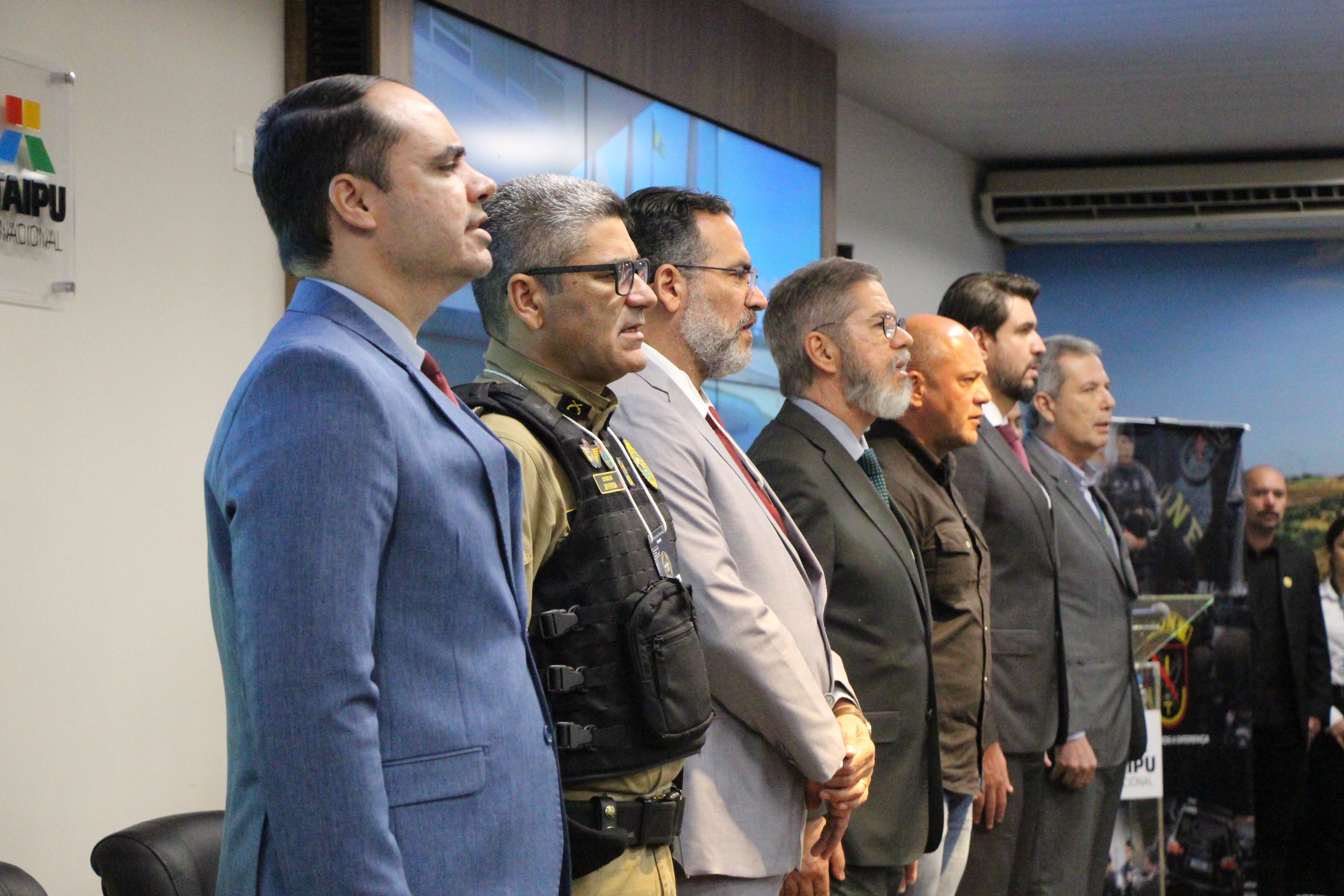 Estiveram presentes: O Secretário Nacional de Segurança Pública Substituto, Rodney da Silva; o Secretário de Estado da Segurança Pública (SESP), Hudson Leoncio Teixeira; o Comandante-Geral da PMPR, coronel Jefferson Silva; o Subcomandante-Geral da PMPR, Coronel Paulo Henrique Semmer; o Comandante do Comando de Missões Especiais, Coronel Paulo Renato Aparecido Siloto; o Diretor de Inteligência da PMPR, Coronel Rinaldo Paz da Rocha; o Diretor-Geral da Polícia Rodoviária Federal, Antônio Fernando Souza Oliveira; o Comandante do BPRONE, em nome do qual agradeceu os representantes do PATAMO do Brasil, Tenente-Coronel João Roberto das Graças Galeto Alves; o Gerente da Rede Nacional de Operações Ostensivas Especializadas, Tenente-Coronel Daniel Isaac Barros de Souza Leão; o Coordenador-Geral de Combate ao Crime Organizado do Ministério da Justiça e Segurança Pública, Getúlio Monteiro de Castro; e o Chefe da Assessoria de Informações da Itaipu Binacional, Marcos Antônio Farias.