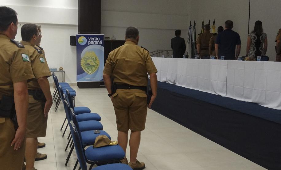 A reunião foi presidida pelo Coordenador Geral do Verão Paraná 2017/2018 e Secretário Chefe da Casa Militar, coronel Elio de Oliveira Manoel, juntamente com o Chefe da Diretoria de Pessoal da PM, coronel Antônio Zanatta Neto, a Chefe do Estado Maior da PM, coronel Audilene Rosa de Paula Dias Rocha, o Comandante do 6º Comando Regional da PM (6º CRPM), coronel Chehade Elias Geha, o Comandante do 9º Batalhão de Polícia Militar (9º BPM), tenente-coronel Rui Noé Barroso, o Corregedor-Adjunto da Coger, tenente-coronel Luiz Marcelo Maziero Jakiemiv, a Juiza da Comarca de Pontal do Paraná, Bianca Bacci Bisetto, e o promotor de justiça de Pontal do Paraná, Gladyson Ishioka.