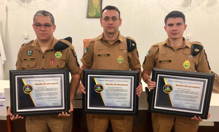 Policiais militares que salvaram bebê de 11 dias de vida receberam, nesta segunda-feira (24/06), uma Moção de Aplausos demonstrando gratidão pelo trabalho policial realizado na cidade. A homenagem foi na Câmara Municipal de Vereadores do Cruzeiro do Oeste e os PMs que receberam a honraria pertencem ao 7º Batalhão de Polícia Militar (7º BPM), do 3º Comando Regional de Polícia Militar (3º CRPM).