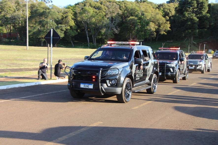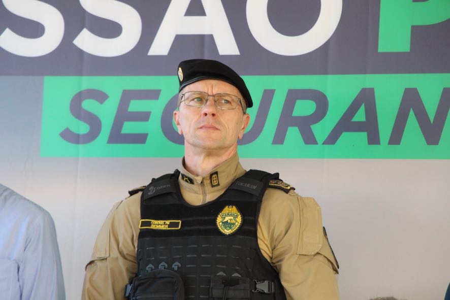 A Polícia Militar do Paraná participou, nesta quinta-feira (6), do lançamento da Missão Paraná III – Operação Sinergia IV, realizado na cidade de Pitanga, na região Central do Estado. A ação, voltada ao fortalecimento da integração entre as forças de segurança e com a comunidade, reuniu autoridades civis e militares, além de representantes da Polícia Civil, Polícia Científica, Polícia Penal, Corpo de Bombeiros Militar do Paraná e Guarda Municipal. O Secretário da Segurança Pública do Paraná, coronel veterano Hudson Leôncio Teixeira, o Comandante-Geral em exercício da Polícia Militar do Paraná, coronel Paulo Henrique Semmer, e as demais autoridades foram recepcionados pelo prefeito de Pitanga, sargento Dirceu Moraes.