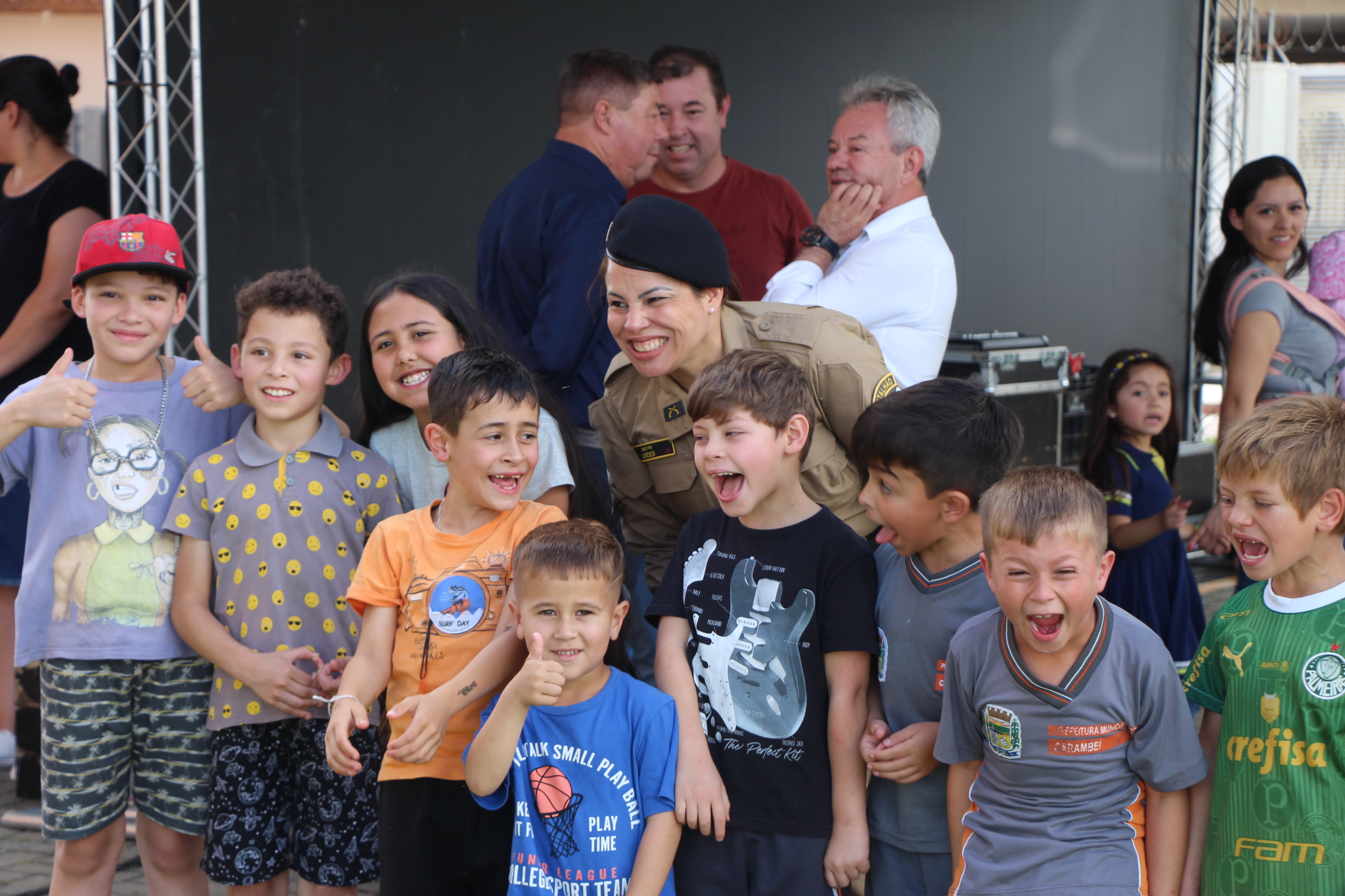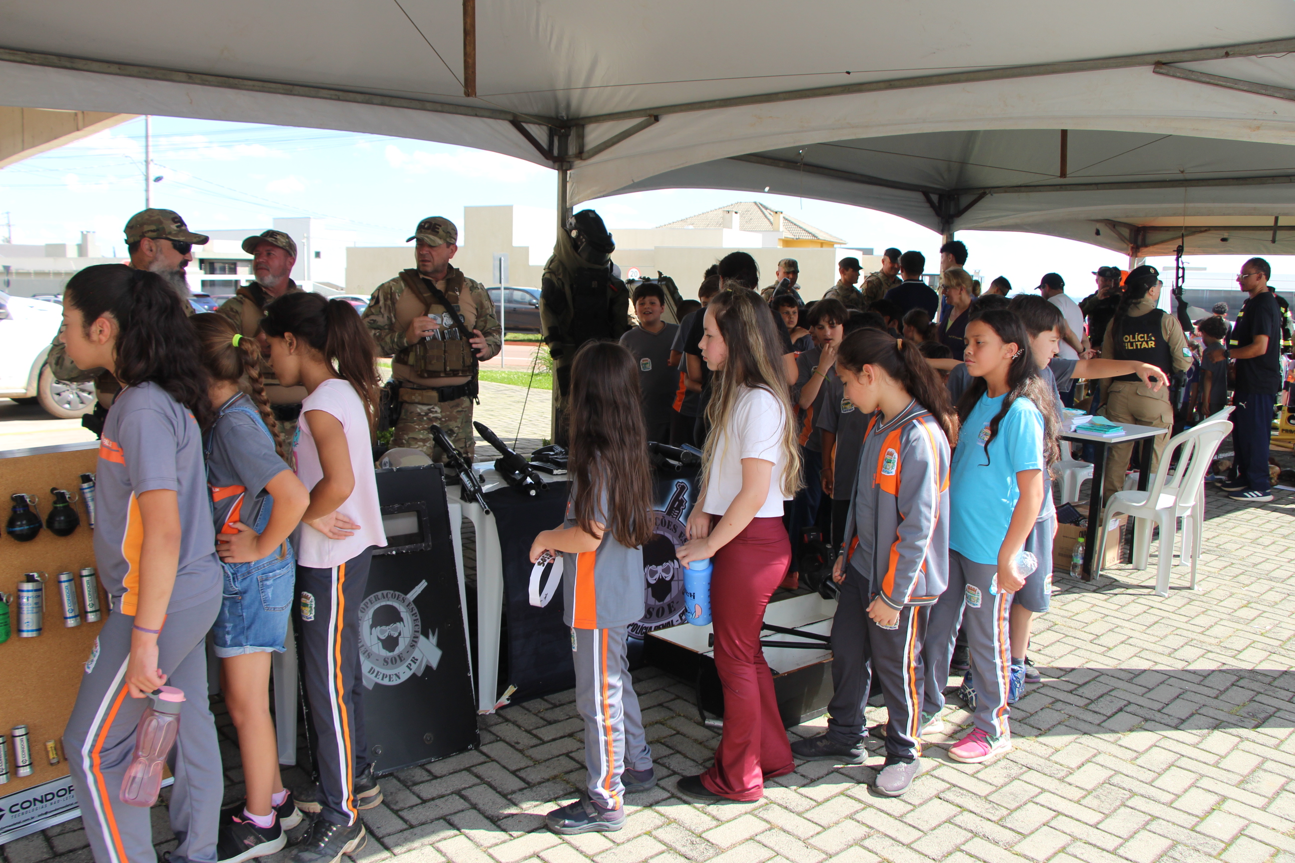 INTEGRAÇÃO – O lançamento da operação foi marcado por uma ampla exposição de equipamentos e viaturas das forças de segurança, que despertou o interesse da população local. Crianças, famílias e estudantes puderam conhecer de perto o trabalho desenvolvido pelos profissionais da segurança pública. A atração musical ficou por conta da Banda da Polícia Militar do Paraná, que embalou o público com um repertório variado de sucessos da música nacional e internacional.