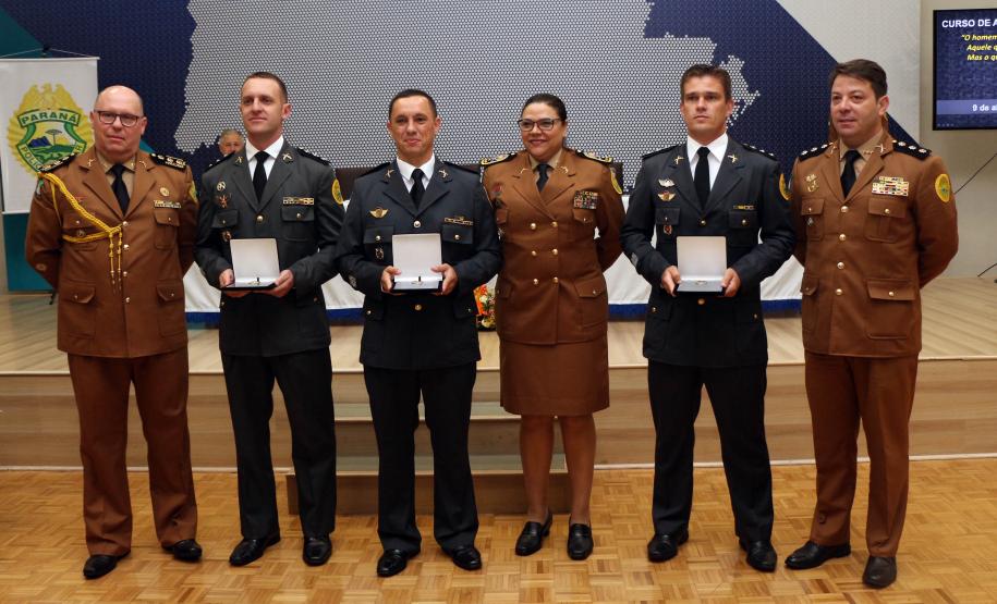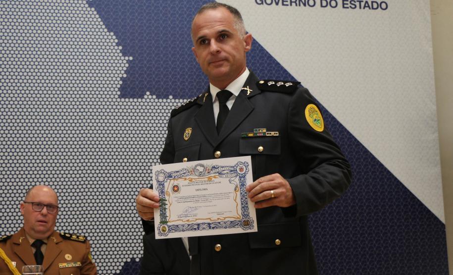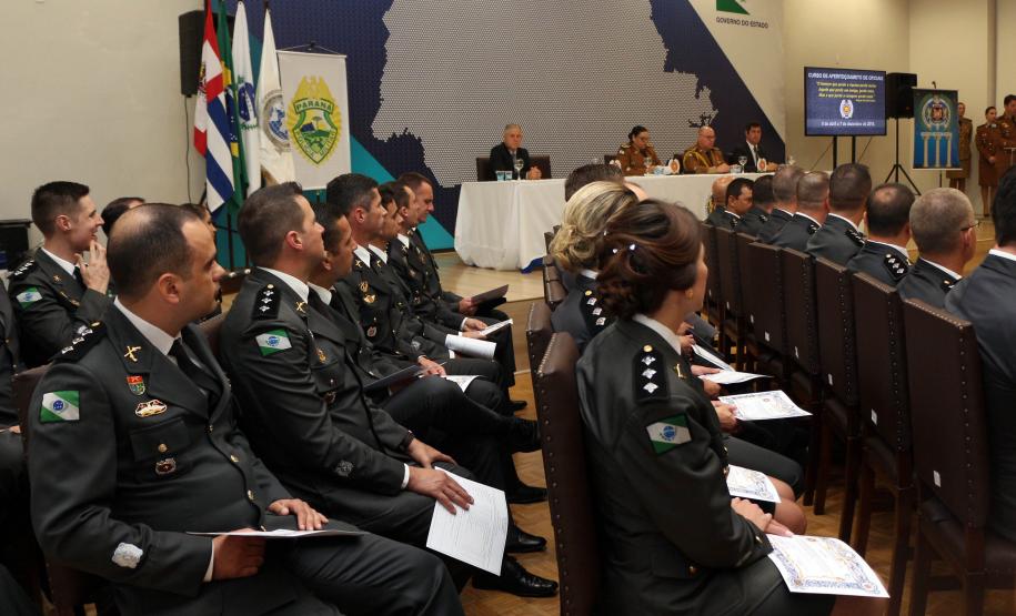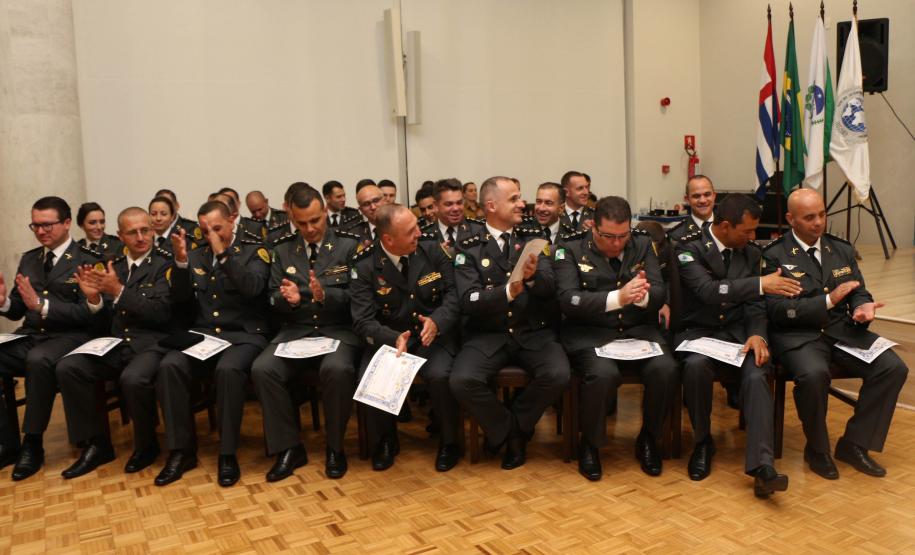 Oficiais da Polícia Militar e do Corpo de Bombeiros concluíram na última semana o Curso de Aperfeiçoamento de Oficiais (CAO), que habilita os profissionais a terem conhecimento para assumirem no futuro funções de coordenação e de gestão da Corporação. O evento foi no Salão de Atos do Palácio Iguaçu, em Curitiba, na última sexta-feira (07/12).