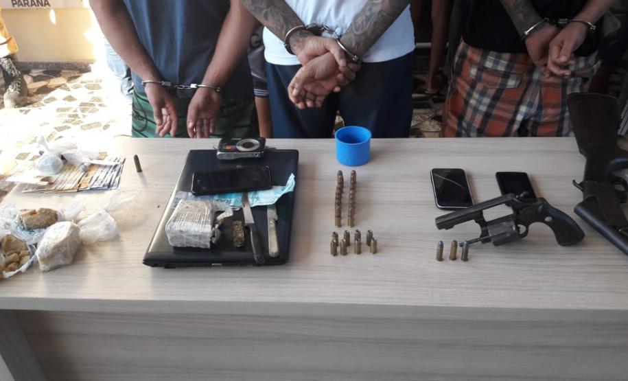 Durante as abordagens as equipes policiais localizaram 464 gramas de maconha, 490 gramas de cocaína e 15 gramas de cocaína. Também foram apreendidas duas armas de fogo (uma espingarda e um revólver, ambos de calibre .38), 32 munições de calibres .40, .38 e .28, além de materiais para pesagem e embalagem das drogas (balança de precisão e pinos vazios).