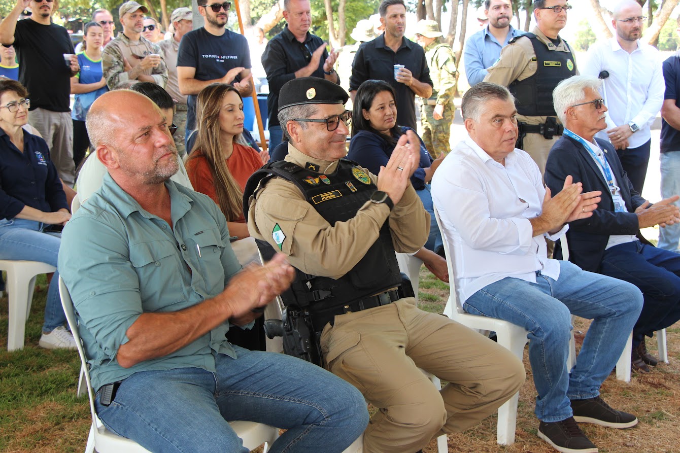 A solenidade contou com a presença do Secretário da Segurança Pública do Paraná, Coronel Hudson Leôncio Teixeira, do Secretário de Infraestrutura e Logística, Sandro Alex, e do Secretário de Estado da Agricultura e do Abastecimento, Marcio Nunes. Também prestigiaram o evento o Comandante-Geral da PMPR, Coronel Jefferson Silva, o Subcomandante-Geral, Coronel Paulo Renato Aparecido Siloto, o Comandante do 5º Comando Regional de Polícia Militar, Coronel Valmir de Souza, o Comandante do Comando de Missões Especiais (CME), Tenente-Coronel Alexandre Lopes Dias, e o Comandante do Batalhão de Polícia de Fronteira (BPFRON), Tenente-Coronel Eldison Martins do Prado , além das autoridades locais representadas pelo Prefeito de Santa Helena, Dinho Maraskin, e pela Vice-prefeita Fabricia Bedendo.