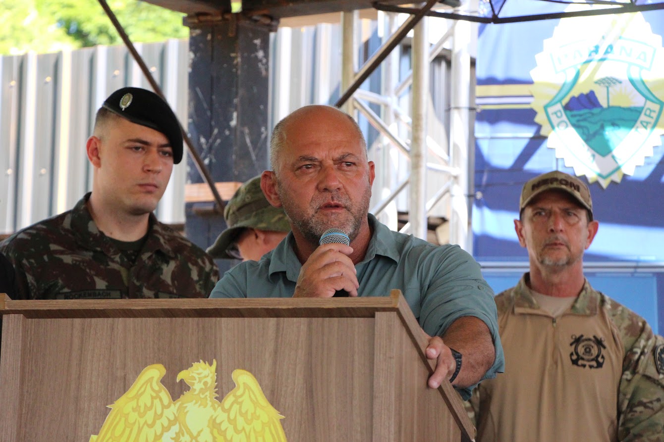 Durante a solenidade, o Comandante-Geral da PMPR, coronel Jefferson Silva, destacou que o objetivo principal do projeto é a proteção das divisas e o combate direto ao crime organizado. Ele explicou que a unidade é fruto de estudos técnicos que fundamentaram a projeção de onze bases estratégicas pelo estado, sendo a de Santa Helena uma peça-chave para aumentar a segurança da população local e de todo o Paraná. ”Embora a unidade conte com infraestrutura moderna, aeronaves e viaturas de primeira geração, o elemento mais importante é o material humano, visto que o policial militar está altamente capacitado e motivado graças aos investimentos que o Governo tem feito para garantir as melhores condições de trabalho”, comentou.