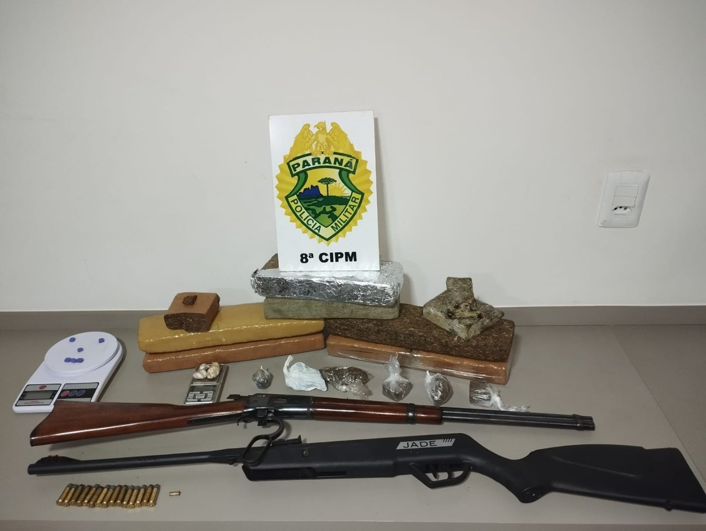 Como resultado da operação, foram apreendidos aproximadamente 7,146 quilos de substância análoga à maconha, 10,5 gramas de substância análoga ao crack, 15,9 gramas de haxixe, seis comprimidos de ecstasy, duas balanças de precisão, uma carabina calibre .38 e uma carabina de pressão modificada para calibre .22, reforçando a atuação da Polícia Militar no combate ao tráfico de drogas e à criminalidade na região.