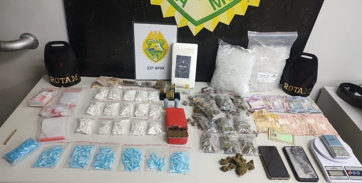Na noite desta quinta-feira (18/09), por volta das 21h, a Polícia Militar do Paraná (PMPR), por meio do 23º Batalhão (BPM), realizou uma apreensão de drogas e munições durante a Operação Sinergia III.