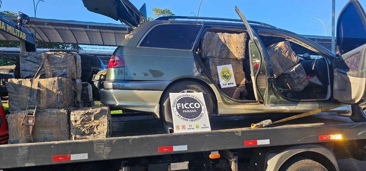 Equipes do 14º Batalhão de Polícia Militar (BPM), com apoio do Batalhão de Polícia de Fronteira (BPFRON), realizaram a interceptação de um veículo Toyota Caldina que transportava uma carga de entorpecentes oriundos da barranca do Rio Paraná.