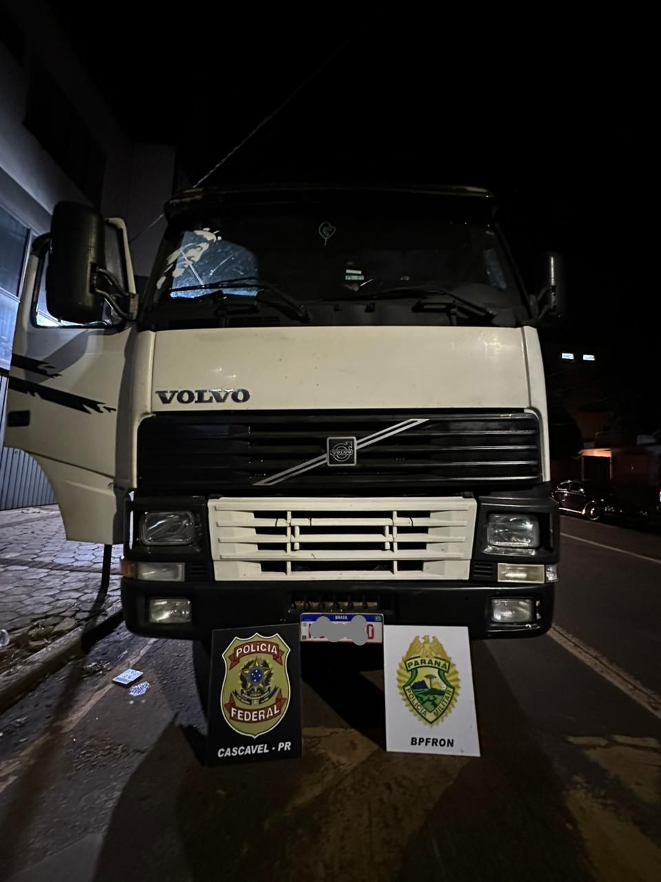 As equipes policiais receberam informações sobre um possível transporte de entorpecentes e, durante patrulhamento, visualizaram um caminhão Volvo FH adentrando o pátio de um posto de combustíveis às margens da BR-467. Após breve monitoramento, foi realizada a abordagem do veículo.
