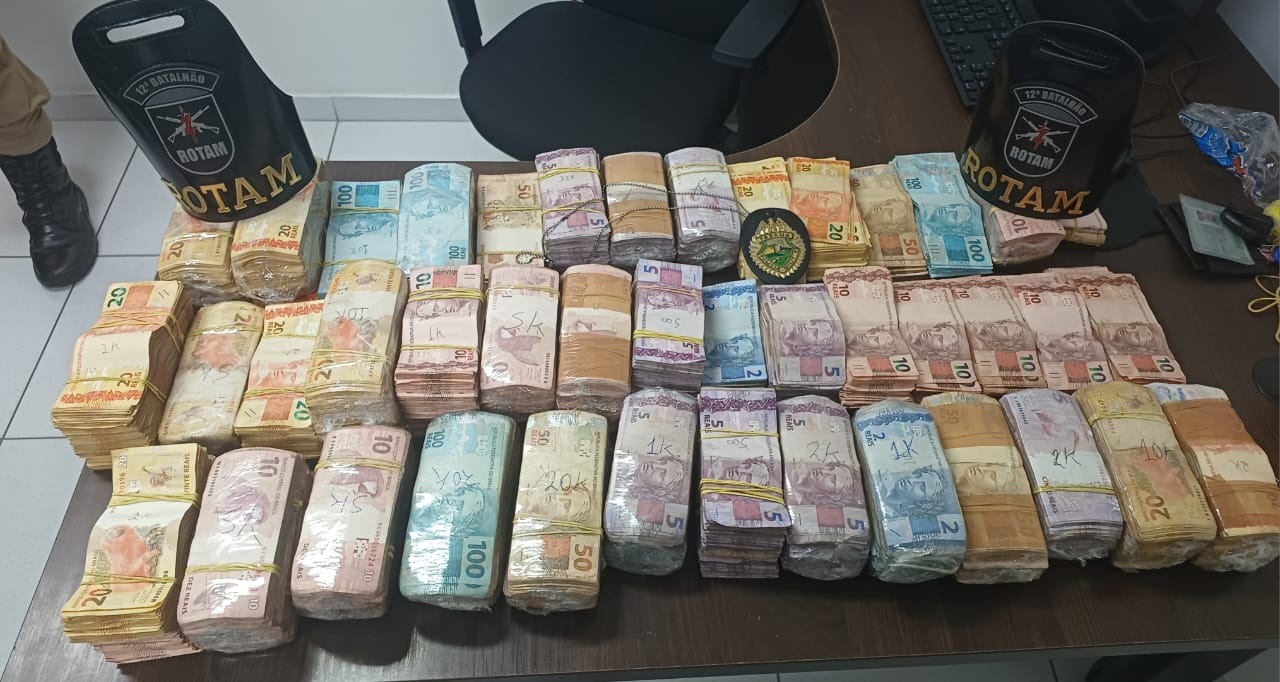 A equipe realizava diligências relacionadas ao tráfico quando um homem foi abordado logo após sair de um apartamento monitorado, sendo localizado com R$ 22.380,00. No imóvel, os policiais localizaram uma quantia ainda maior em dinheiro, além de centenas de comprovantes de depósitos, sugerindo intensa movimentação financeira ligada ao crime. Um veículo também foi apreendido.