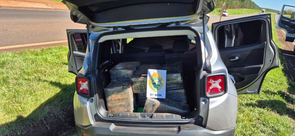 Nesta segunda-feira (11), por volta das 9h, a Polícia Militar do Paraná, através de equipes do 11º Batalhão de Polícia Militar (BPM), apreendeu 532,8 quilos de maconha e prendeu um homem que conduzia um veículo Jeep Renegade clonado pela PR-317, entre os municípios de Engenheiro Beltrão e Quinta do Sol. A ação foi desencadeada após informações repassadas à Agência Local de Inteligência (ALI) do 11º BPM, indicando que o automóvel estaria deslocando de Foz do Iguaçu rumo à região transportando entorpecentes.