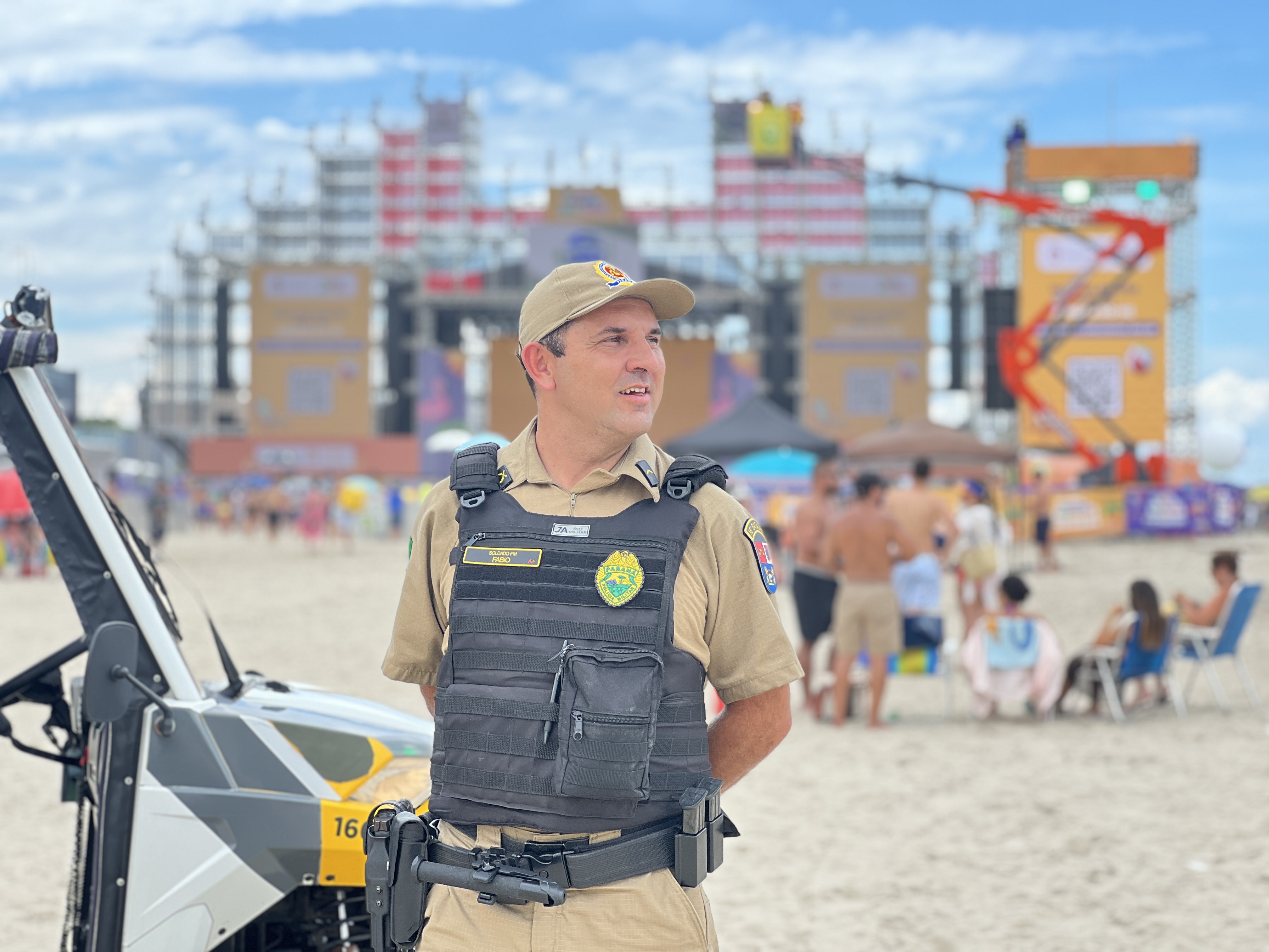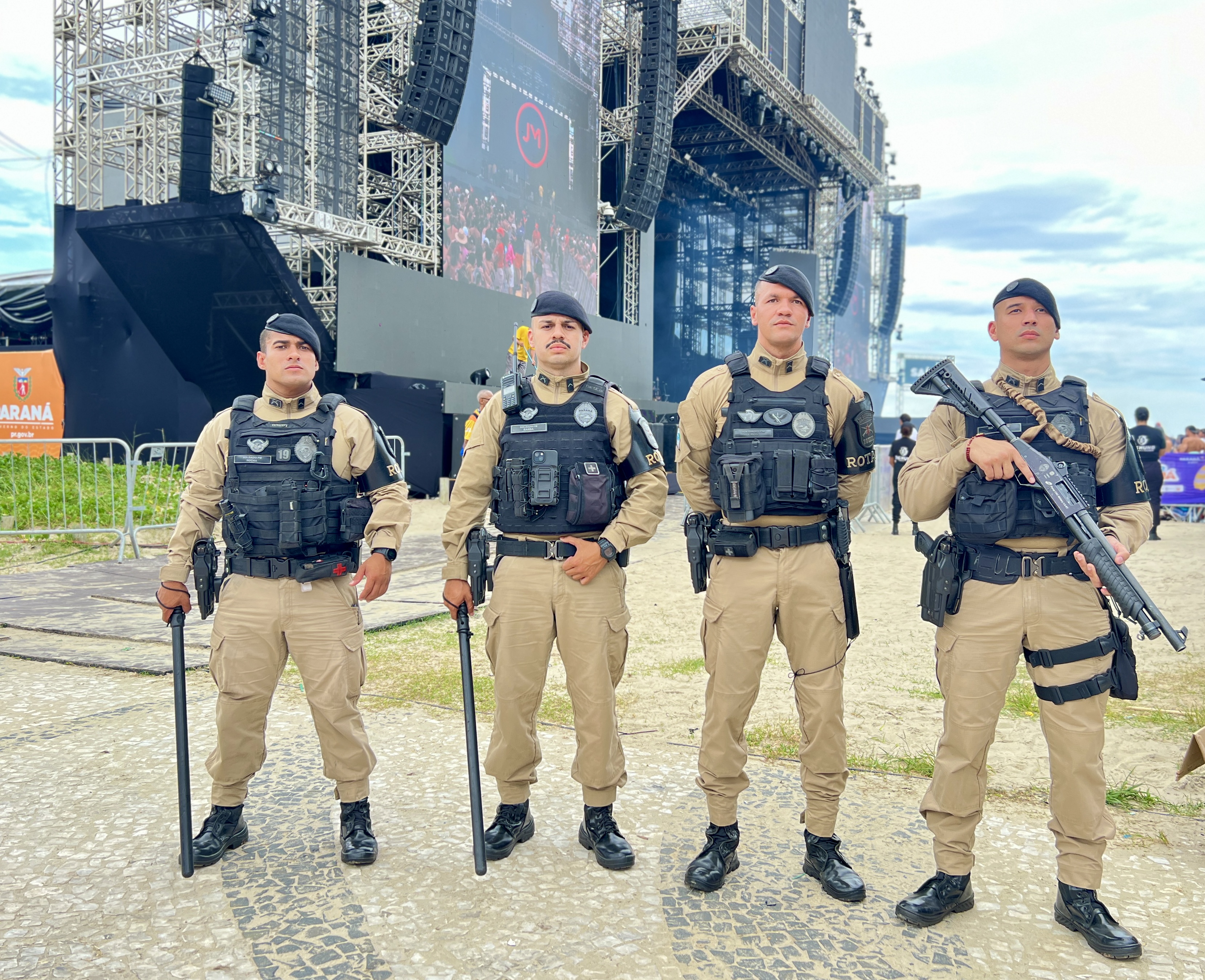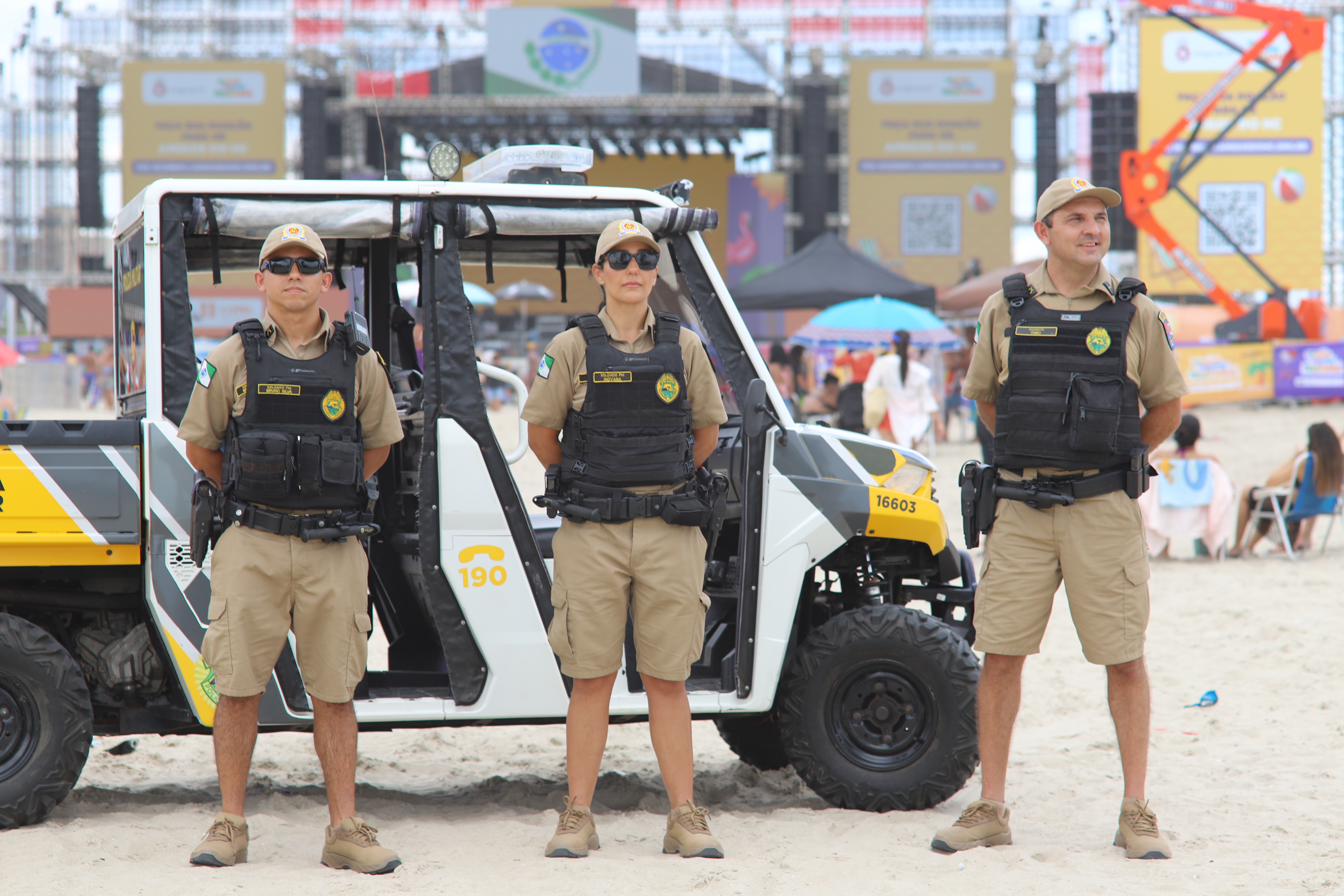 Nas areias, o policiamento a pé foi intensificado para garantir maior proximidade com o público, aliado ao emprego de UTVs, quadriciclos e das Plataformas de Observação Elevada (POE), que ampliaram o campo de visão das equipes e facilitaram a identificação de situações suspeitas. Essa combinação de efetivo e recursos foi essencial para prevenir brigas, furtos, roubos e outros delitos, assegurando um ambiente seguro do início ao fim das apresentações.