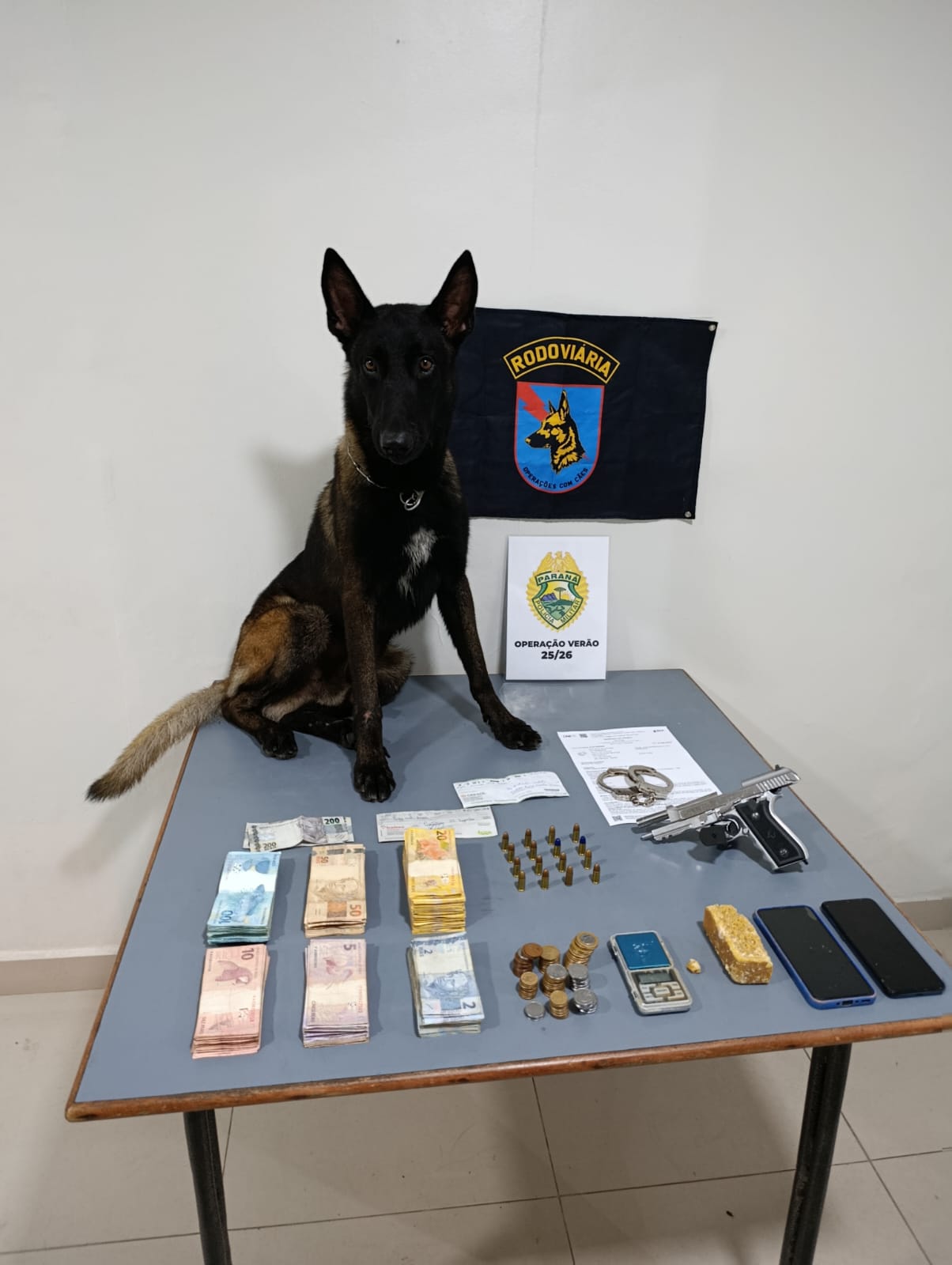 Diante da flagrância e do mandado vigente, os envolvidos foram presos e encaminhados à Delegacia de Polícia Civil de Guaratuba. O saldo da operação inclui a apreensão de mais de R$ 34 mil — sendo R$ 19 mil em espécie e R$ 15 mil em cheques —, além da arma de fogo, 187g de crack e materiais de contabilidade. Ações de alto impacto como essa reforçam a atuação da Polícia Militar do Paraná durante a Operação Verão, garantindo a segurança da população paranaense ao retirar de circulação armas, drogas e criminosos de alta periculosidade.
