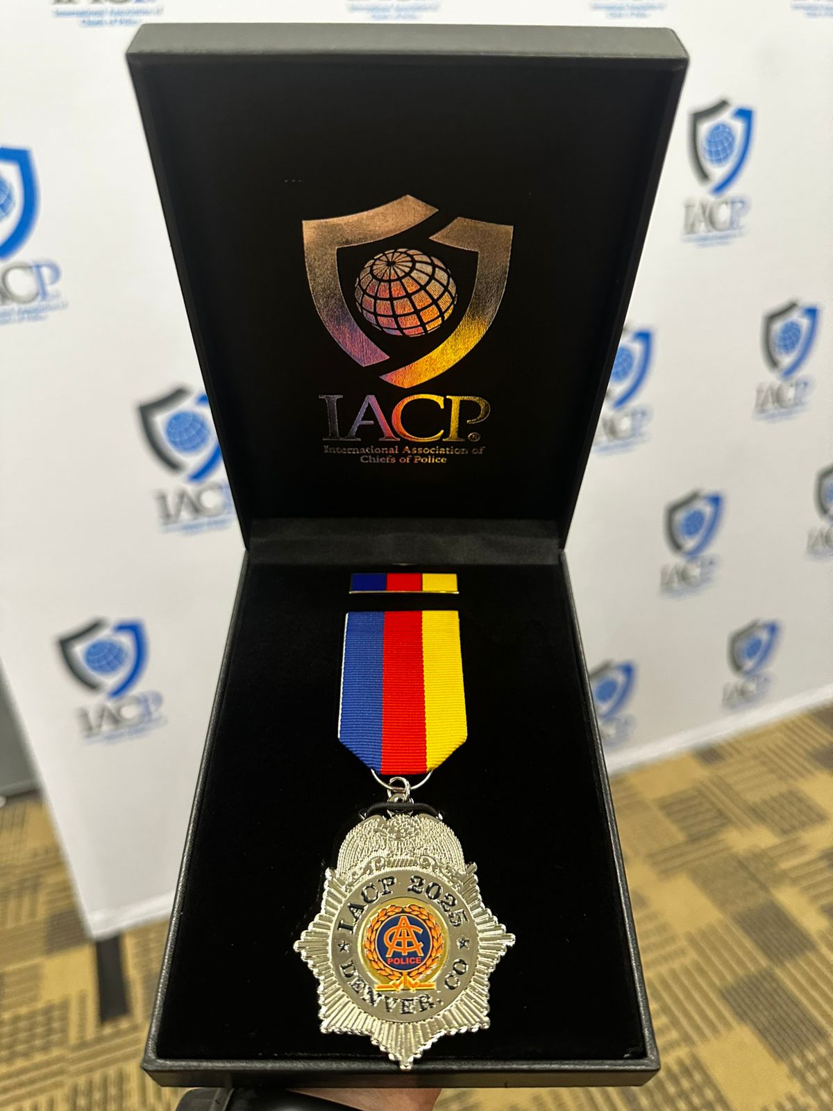 Durante o encerramento, o Comandante-Geral da PMPR, coronel Jefferson Silva, recebeu uma medalha das mãos do presidente da IACP, senhor Ken Walker, Chefe de Polícia do West University Place Police Department, do Texas (EUA). A condecoração simboliza o reconhecimento internacional pela contribuição da corporação paranaense aos debates sobre gestão, inovação e fortalecimento das políticas de segurança pública.