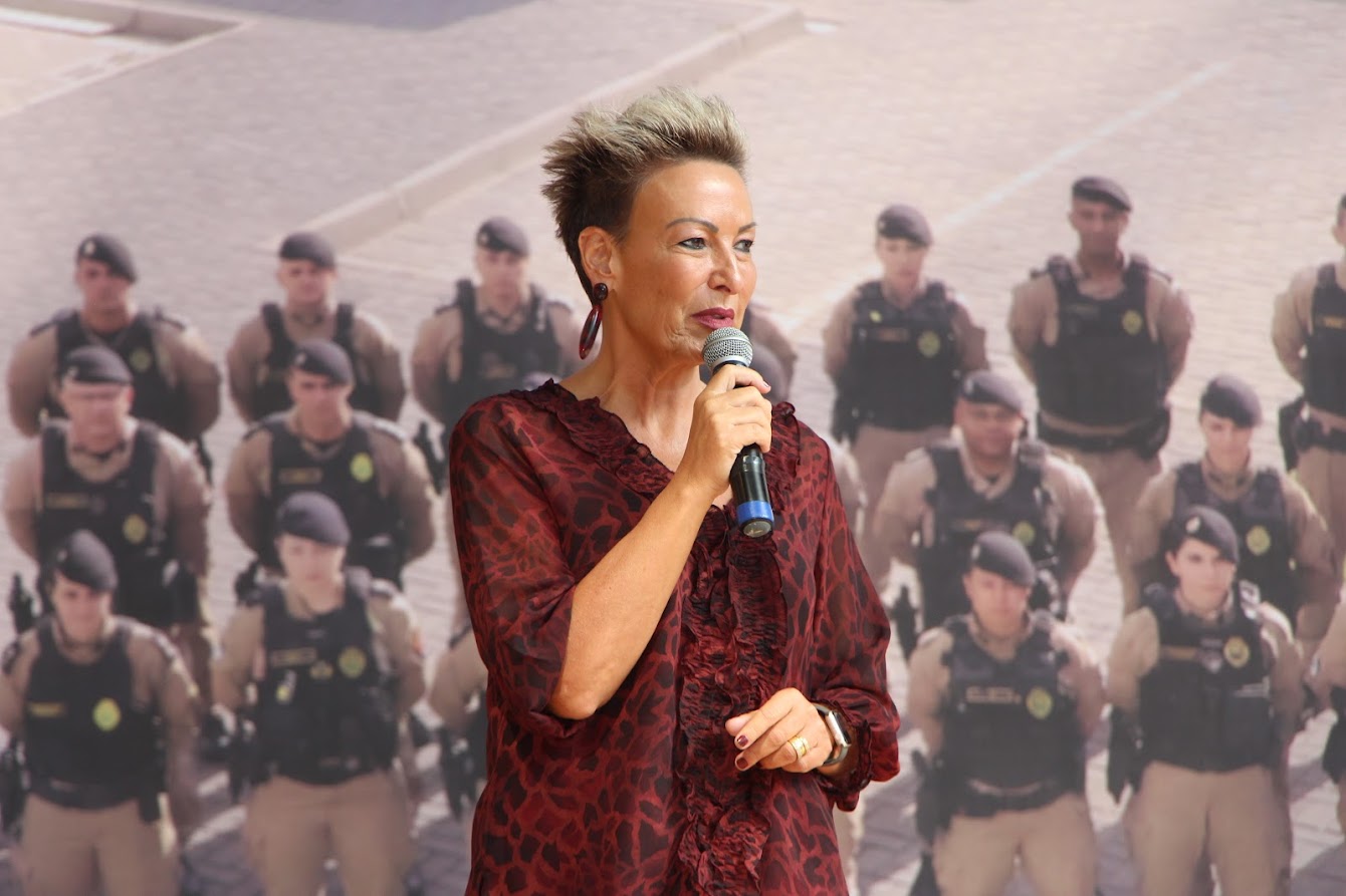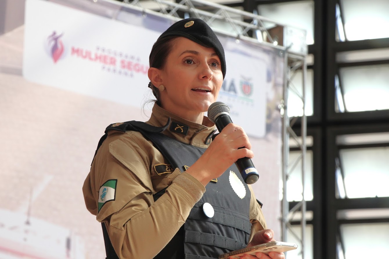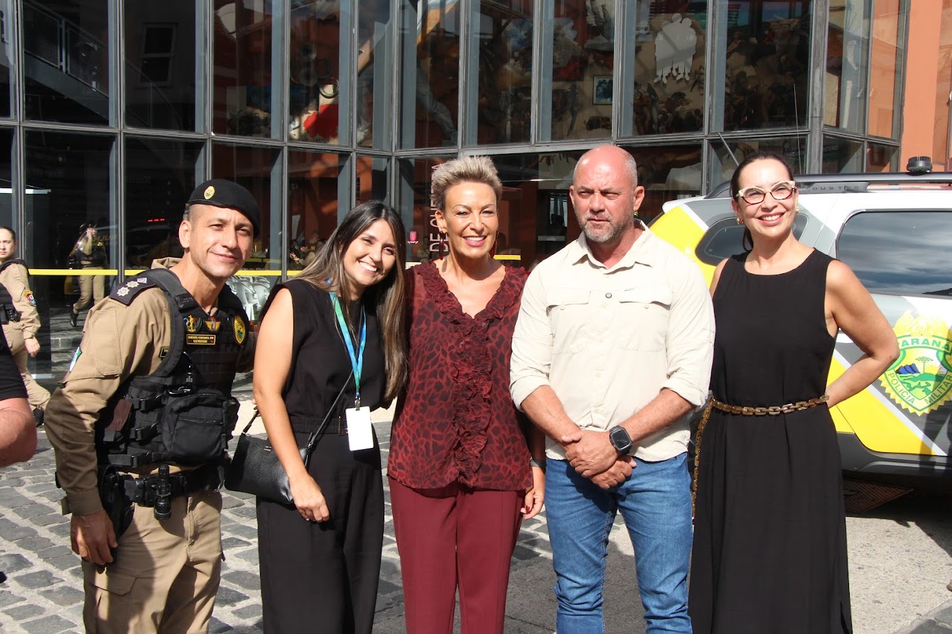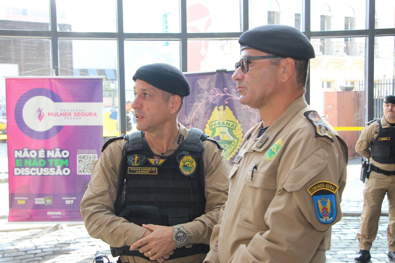 PRESENÇAS — Também participaram o comandante-geral do Corpo de Bombeiros Militar do Paraná, coronel Antonio Geraldo Hiller Lino; o comandante do 5º CRPM, coronel Valmir de Souza; o comandante do 6º CRPM, coronel Alessandro Galaski; o comandante do 2º CRPM, coronel Juarez Saldanha Machado; a deputada estadual Cloara Pinheiro; a deputada estadual Marcia Huçulak; a diretora-geral da Polícia Penal do Paraná Ananda Challegre; o diretor-geral da Polícia Científica do Paraná, Ciro José Pimenta; o gestor de Políticas Públicas da Secretarta da Segurança Pública (Sesp), coronel Silvio Roberto Saulo de Tarso Sanson; o chefe de gabinete do secretário da SESP, coronel Fernando Klemps; o diretor de Logística da PMPR, tenente-coronel Pedro Paulo Porto de Sampaio; o comandante do Policiamento Especializado, tenente-coronel Rogério Gomes Pitz; o comandante do Comando de Missões Especiais, tenente-coronel Alexandre Lopes Dias; o comandante do Comando de Aviação, tenente-coronel Andrey Müller Yark; a delegada-chefe da Divisão de Polícia Especializada da Polícia Civil; Luciana de Novaes; a diretora da secretaria da Mulher de Curitiba, Aline Betenheuser; a presidente da Comissão das Mulheres Advogadas, Naila Franco; e o presidente do Grupo Raytec, Jonatas Matos.