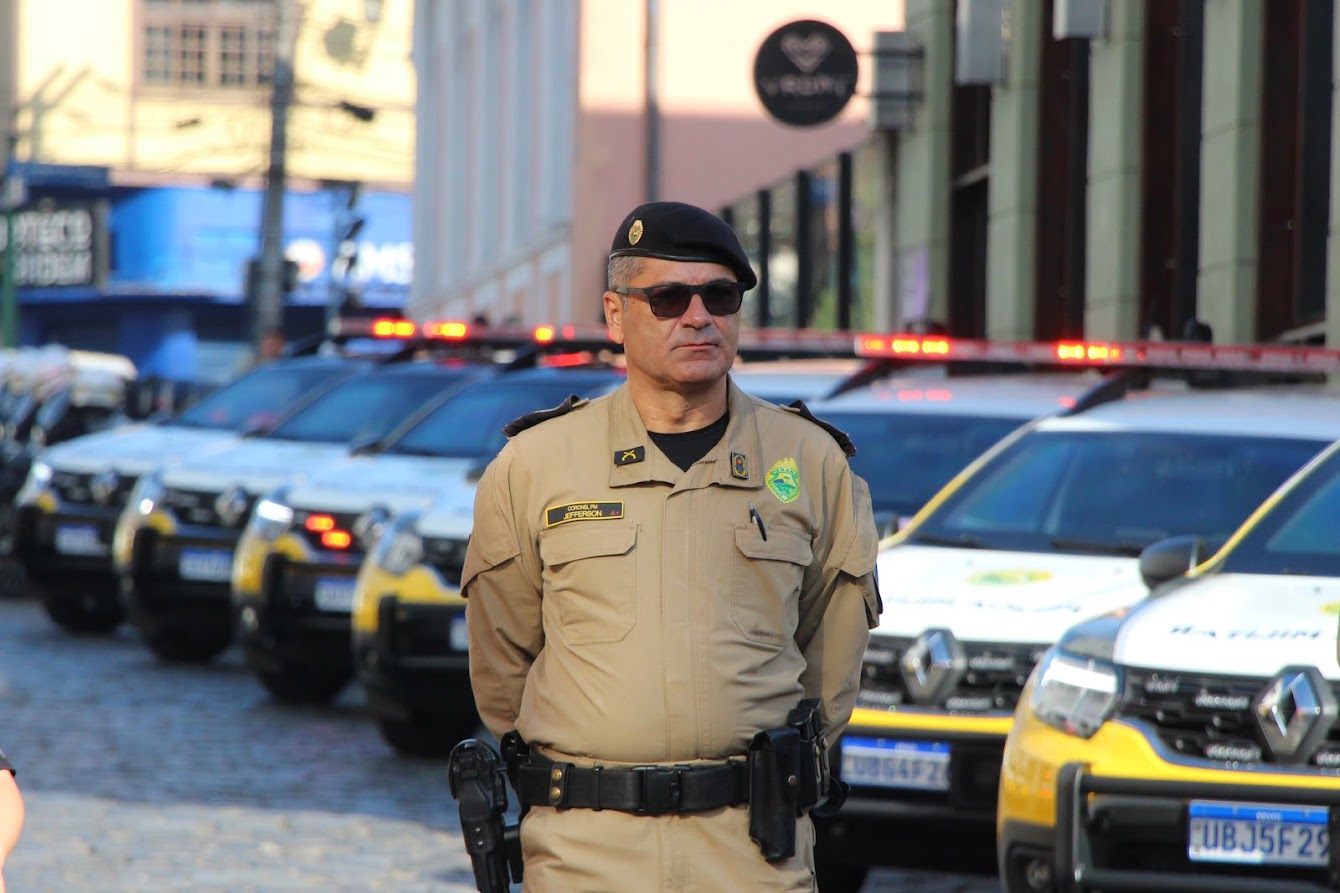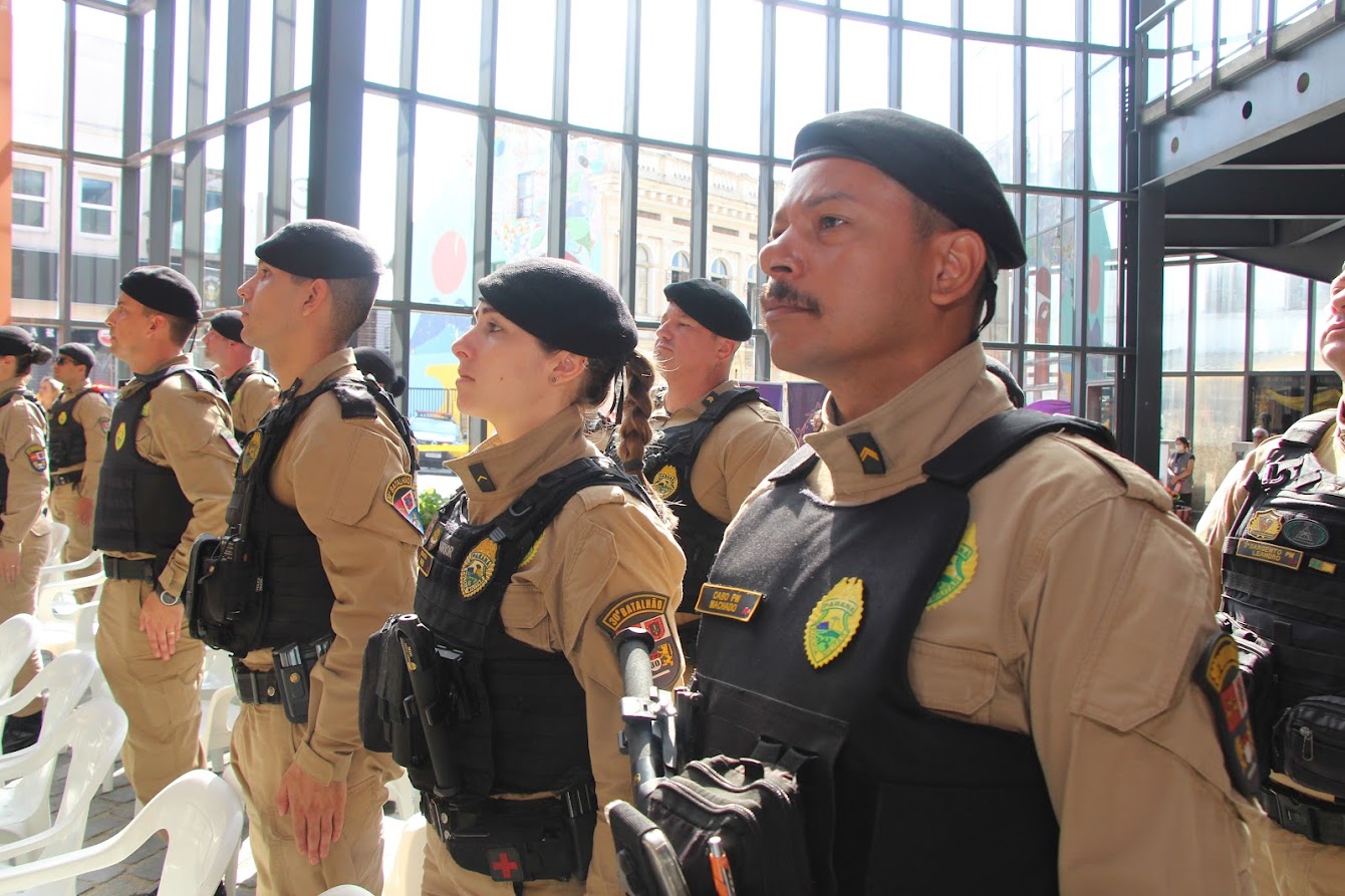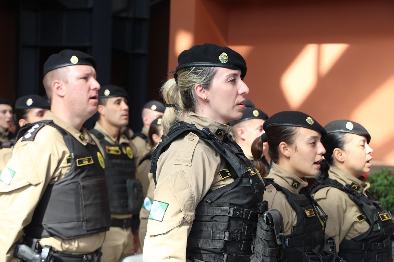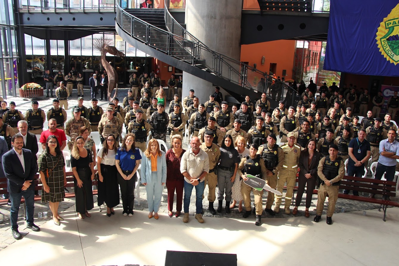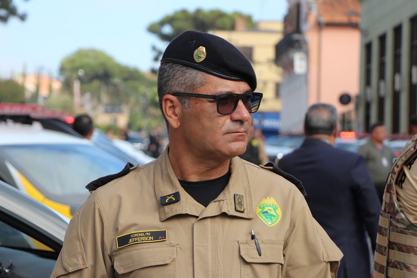 PRESENÇAS — Também participaram o comandante-geral do Corpo de Bombeiros Militar do Paraná, coronel Antonio Geraldo Hiller Lino; o comandante do 5º CRPM, coronel Valmir de Souza; o comandante do 6º CRPM, coronel Alessandro Galaski; o comandante do 2º CRPM, coronel Juarez Saldanha Machado; a deputada estadual Cloara Pinheiro; a deputada estadual Marcia Huçulak; a diretora-geral da Polícia Penal do Paraná Ananda Challegre; o diretor-geral da Polícia Científica do Paraná, Ciro José Pimenta; o gestor de Políticas Públicas da Secretarta da Segurança Pública (Sesp), coronel Silvio Roberto Saulo de Tarso Sanson; o chefe de gabinete do secretário da SESP, coronel Fernando Klemps; o diretor de Logística da PMPR, tenente-coronel Pedro Paulo Porto de Sampaio; o comandante do Policiamento Especializado, tenente-coronel Rogério Gomes Pitz; o comandante do Comando de Missões Especiais, tenente-coronel Alexandre Lopes Dias; o comandante do Comando de Aviação, tenente-coronel Andrey Müller Yark; a delegada-chefe da Divisão de Polícia Especializada da Polícia Civil; Luciana de Novaes; a diretora da secretaria da Mulher de Curitiba, Aline Betenheuser; a presidente da Comissão das Mulheres Advogadas, Naila Franco; e o presidente do Grupo Raytec, Jonatas Matos.