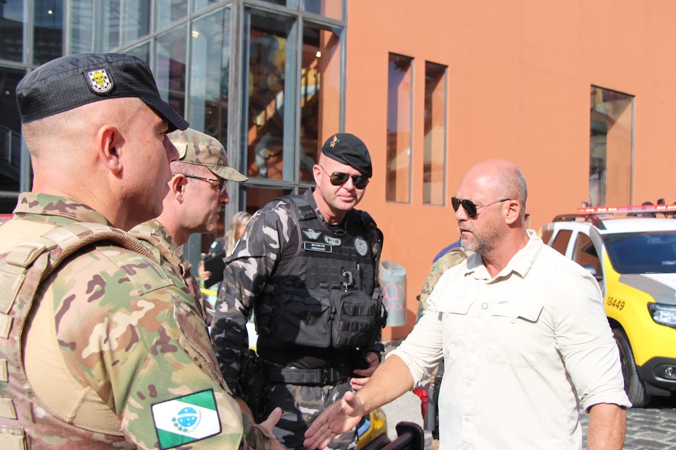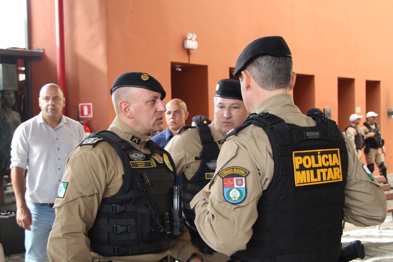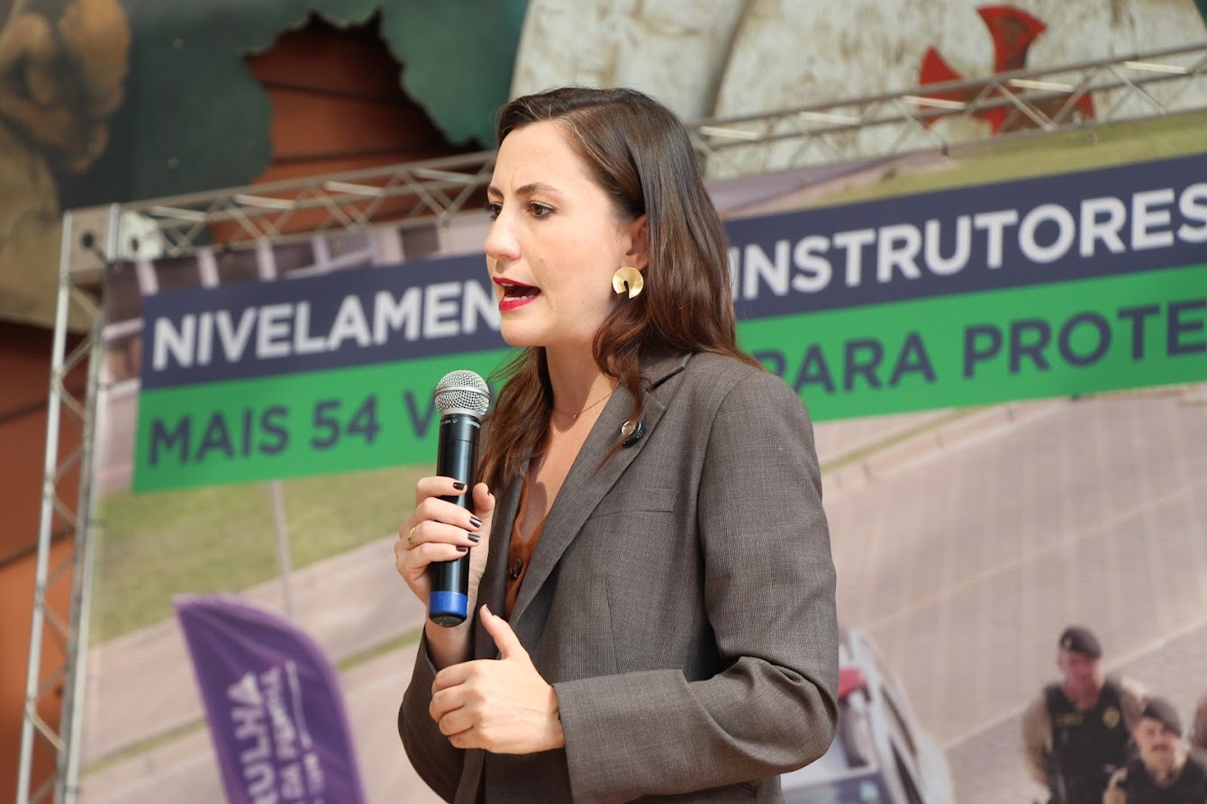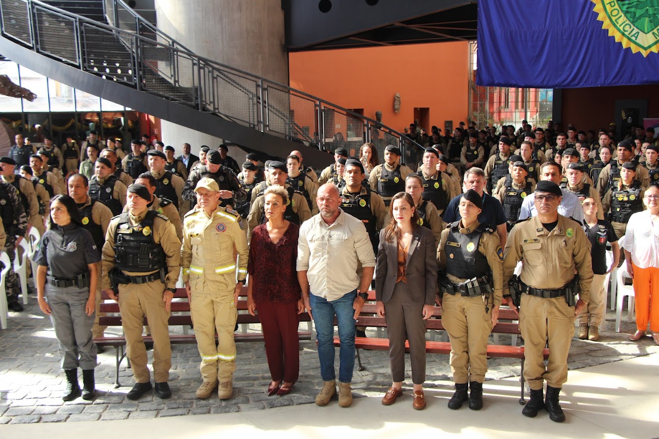 PRESENÇAS — Também participaram o comandante-geral do Corpo de Bombeiros Militar do Paraná, coronel Antonio Geraldo Hiller Lino; o comandante do 5º CRPM, coronel Valmir de Souza; o comandante do 6º CRPM, coronel Alessandro Galaski; o comandante do 2º CRPM, coronel Juarez Saldanha Machado; a deputada estadual Cloara Pinheiro; a deputada estadual Marcia Huçulak; a diretora-geral da Polícia Penal do Paraná Ananda Challegre; o diretor-geral da Polícia Científica do Paraná, Ciro José Pimenta; o gestor de Políticas Públicas da Secretarta da Segurança Pública (Sesp), coronel Silvio Roberto Saulo de Tarso Sanson; o chefe de gabinete do secretário da SESP, coronel Fernando Klemps; o diretor de Logística da PMPR, tenente-coronel Pedro Paulo Porto de Sampaio; o comandante do Policiamento Especializado, tenente-coronel Rogério Gomes Pitz; o comandante do Comando de Missões Especiais, tenente-coronel Alexandre Lopes Dias; o comandante do Comando de Aviação, tenente-coronel Andrey Müller Yark; a delegada-chefe da Divisão de Polícia Especializada da Polícia Civil; Luciana de Novaes; a diretora da secretaria da Mulher de Curitiba, Aline Betenheuser; a presidente da Comissão das Mulheres Advogadas, Naila Franco; e o presidente do Grupo Raytec, Jonatas Matos.