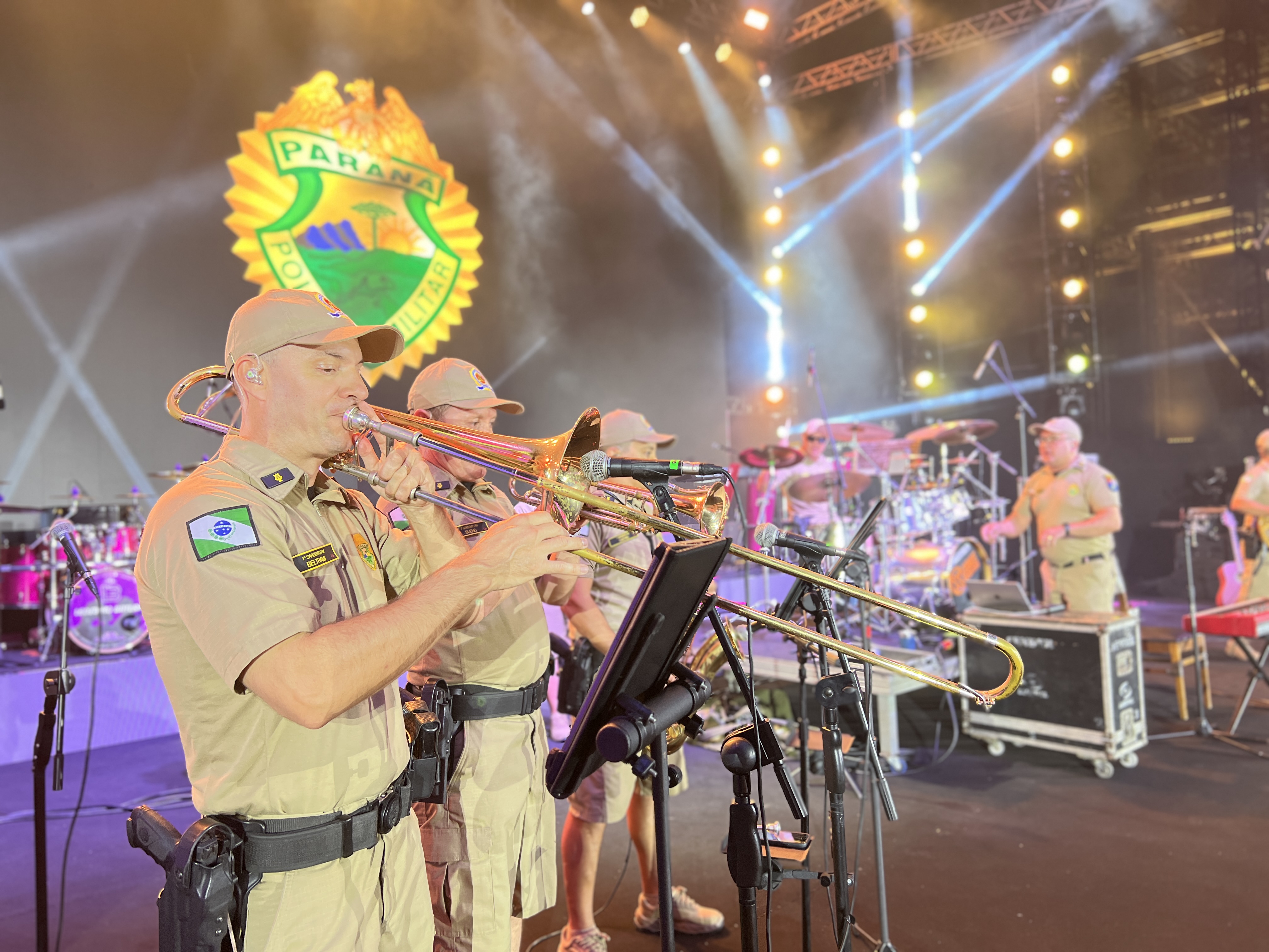 BANDA DA PMPR: Em Matinhos, a Banda de Música da Polícia Militar do Paraná realizou a abertura do show, apresentando um repertório diversificado que animou o público e aqueceu o clima para a apresentação principal. A participação da banda reafirmou, mais uma vez, o sucesso da corporação junto à população durante o Verão Maior Paraná.
