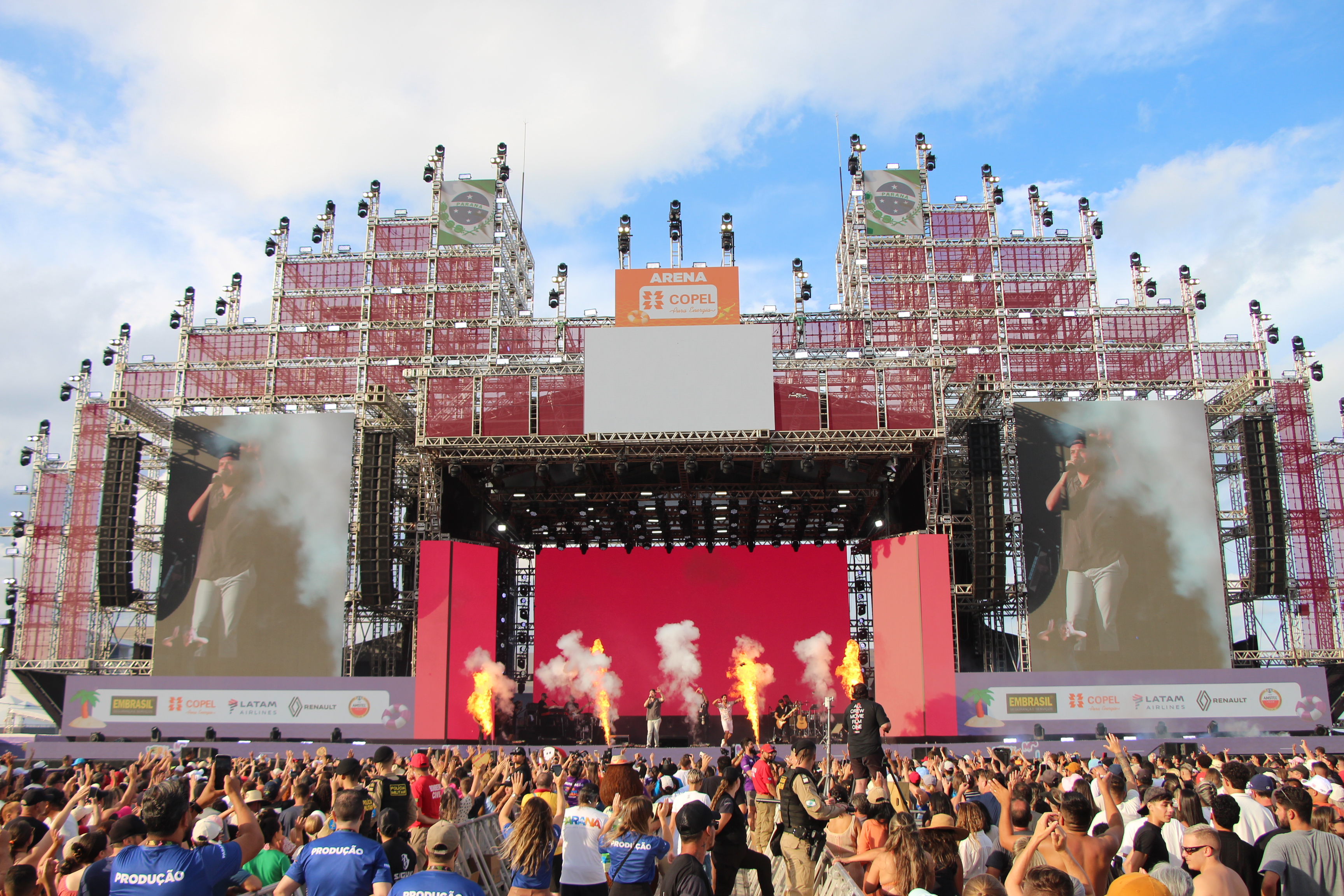 A apresentação da dupla sertaneja Israel e Rodolffo, que aconteceu ao entardecer, atraiu veranistas e moradores à arena em Matinhos. Os artistas animaram o público com sucessos como "Batom de Cereja" e "Bombomzinho". Durante todo o evento, equipes da Polícia Militar do Paraná (PMPR) mantiveram patrulhamento constante, utilizando unidades de Rádio Patrulha Auto (RPA) e equipes especializadas para assegurar a proteção de todos os presentes desde a chegada até a dispersão final.