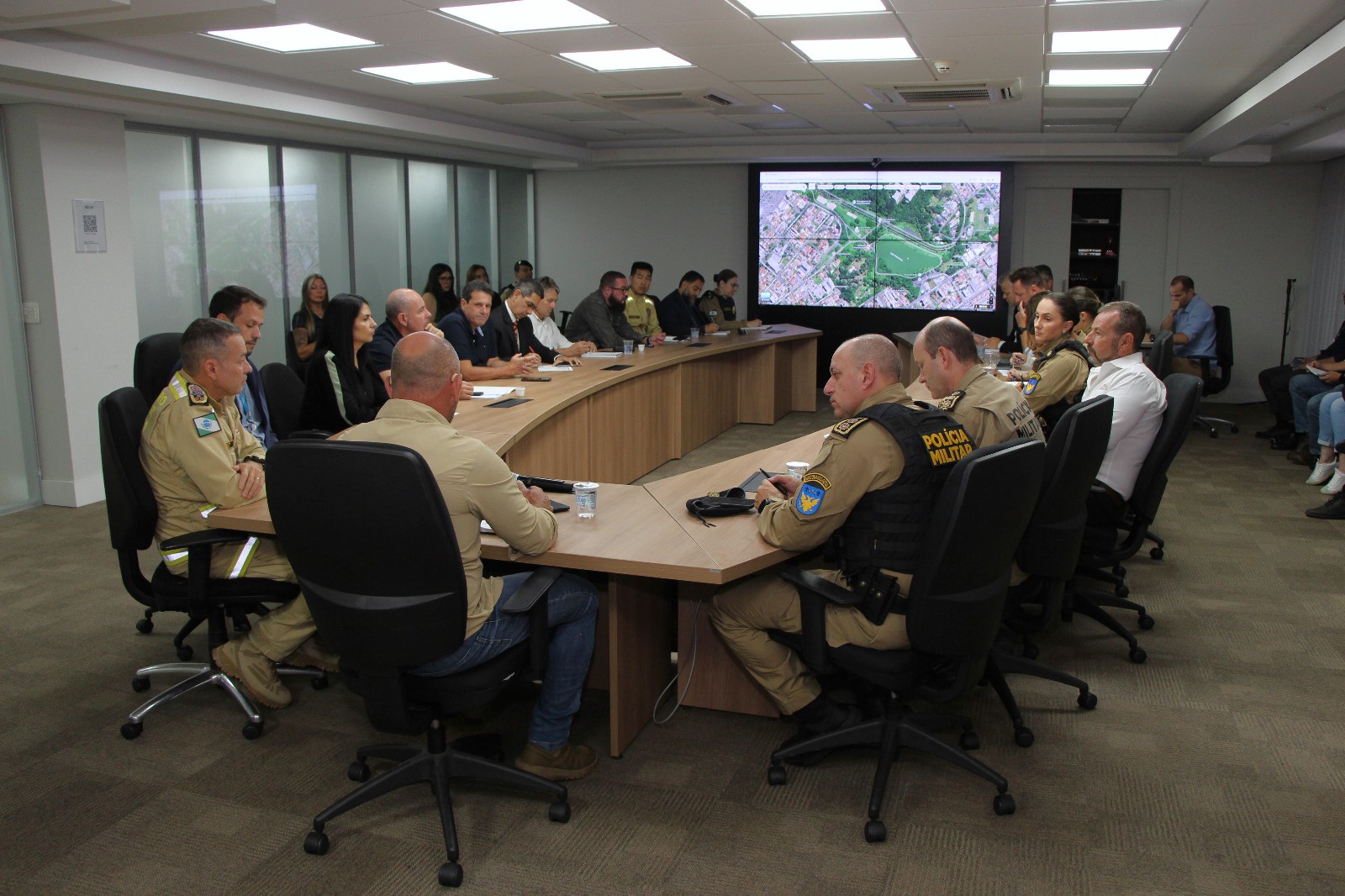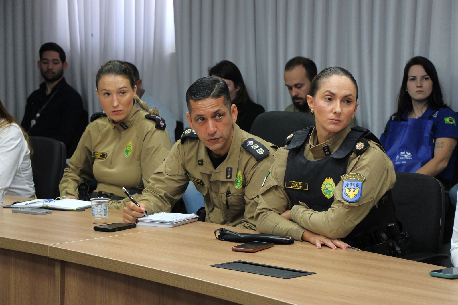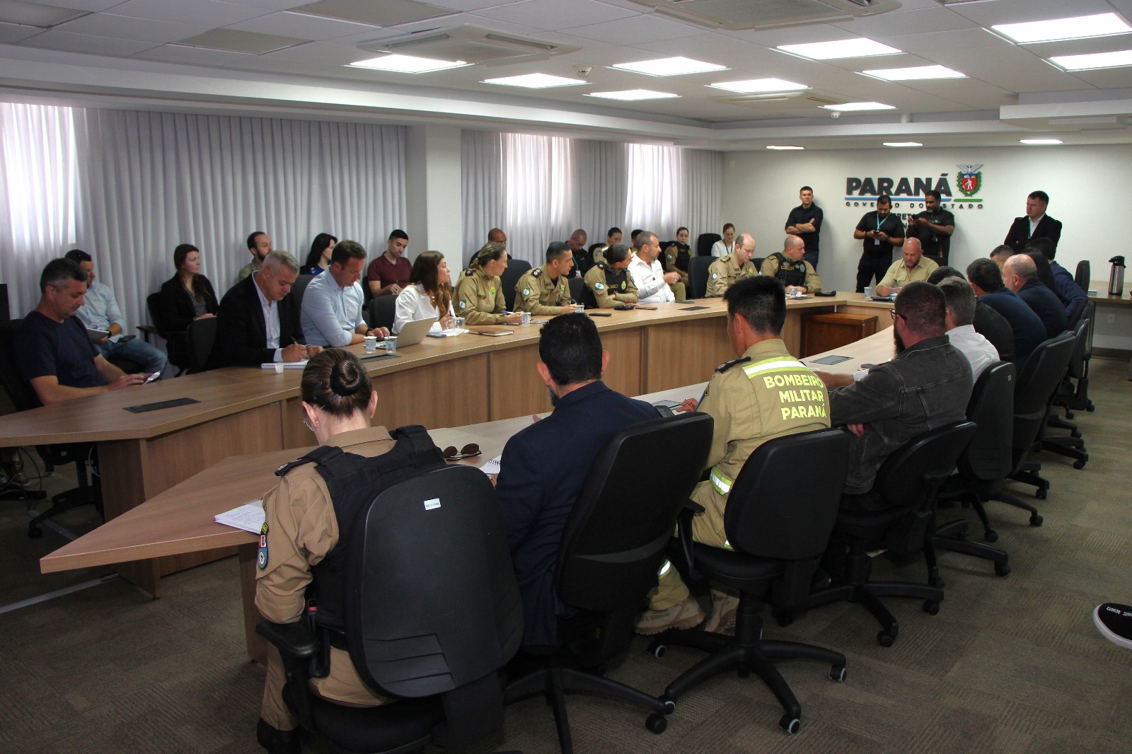 A Polícia Militar do Paraná (PMPR) participou, nesta terça-feira (3), de uma importante reunião de alinhamento na sede da Secretaria de Estado da Segurança Pública (SESP/PR). O encontro reuniu o Subcomandante-Geral da corporação, coronel Paulo Renato Aparecido Siloto e o Chefe do Estado-Maior, coronel Eleandro Azevedo com o Secretário de Segurança do Paraná, coronel veterano Hudson Leôncio Teixeira, com o objetivo de coordenar as atividades integradas que serão desenvolvidas ao longo do Mês da Mulher. A reunião contou com representantes de todas as forças de segurança do estado.