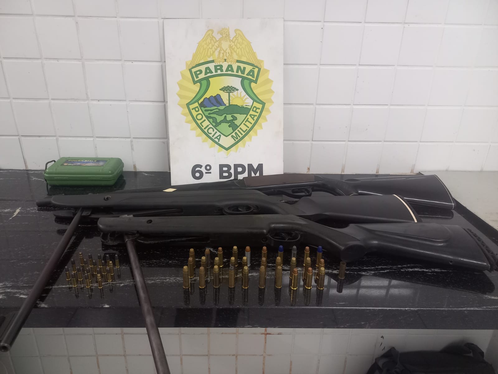 De posse das informações, a equipe policial realizou a abordagem do veículo, sendo localizada, na parte traseira, uma espingarda calibre .22. Com o aprofundamento das buscas, os policiais encontraram ainda um estojo verde contendo diversas munições, totalizando 30 munições calibre .38 intactas e uma deflagrada, além de 18 munições calibre .22 intactas. No local, também foram apreendidas mais duas espingardas, sendo uma delas adaptada para o calibre .22.