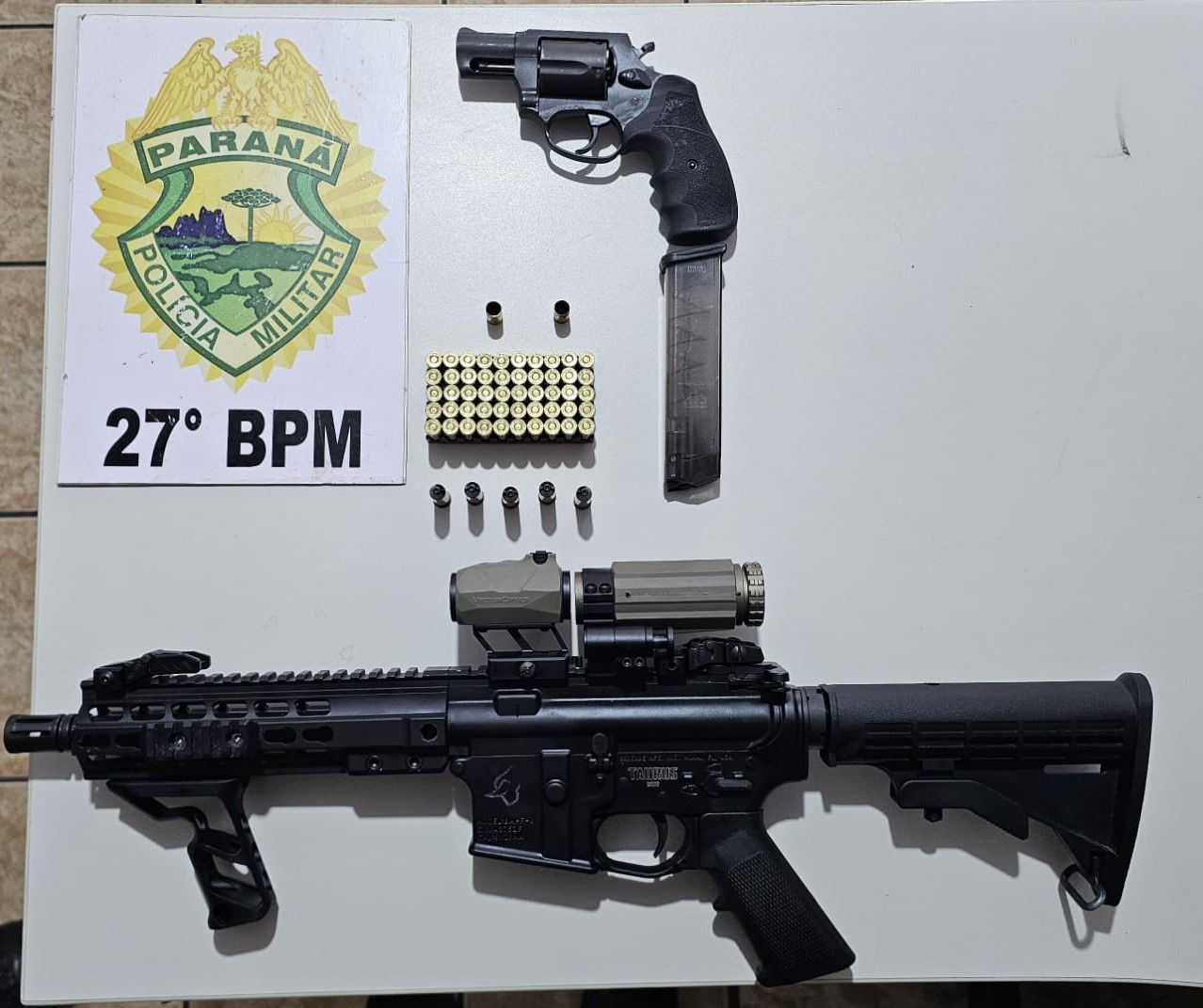 A Polícia Militar do Paraná, por meio do 27º Batalhão de Polícia Militar (BPM), prendeu um homem por porte ilegal de arma de fogo de uso restrito na tarde de sábado (17), por volta das 15h30, no município de Porto Vitória.