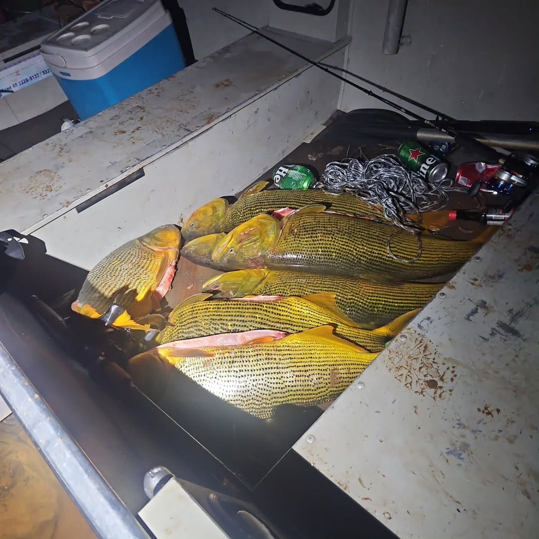 Na ação, foram apreendidos 92,6 kg de dourado, dois conjuntos de embarcações com motores, redes, espinhéis, tarrafas, varas e carretilhas. Também foi localizado um revólver calibre .38 com seis munições intactas.