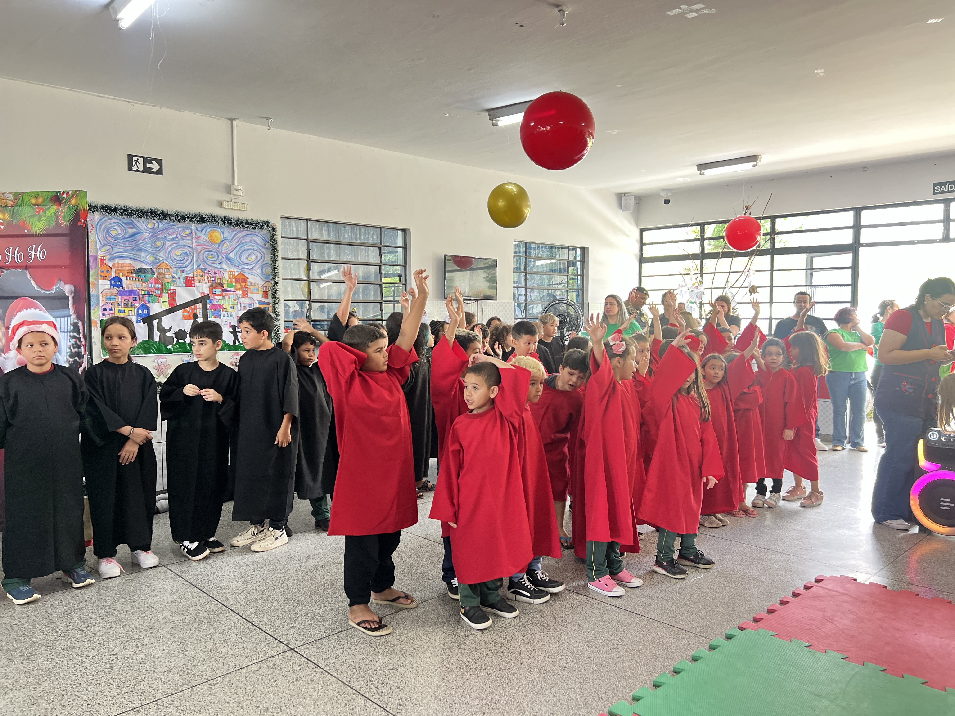 A Polícia Militar do Paraná (PMPR) realizou, na manhã desta segunda-feira (15), uma ação social em uma escola do município de Colombo, com a entrega de presentes a mais de 350 crianças. A iniciativa teve como foco a aproximação da corporação com a comunidade escolar, o fortalecimento do vínculo social e a promoção de momentos de alegria às crianças, especialmente neste período natalino.
