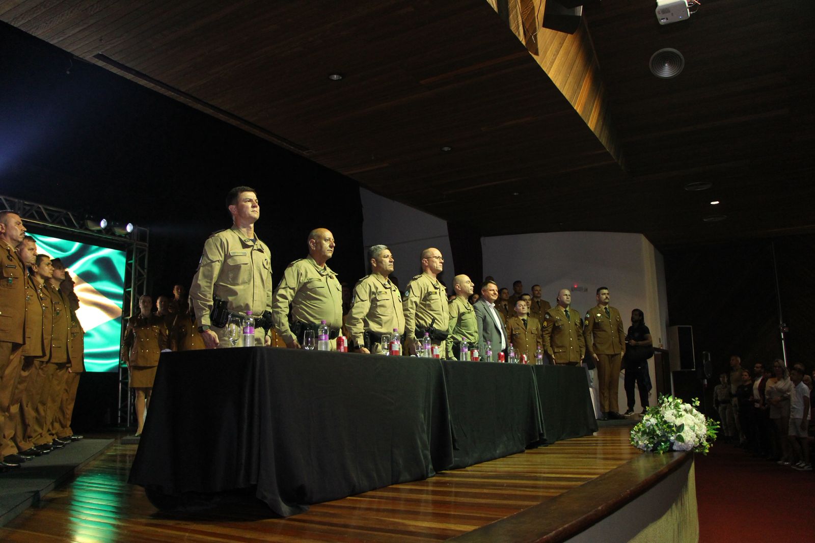 O Comandante-Geral da PMPR, coronel Jefferson Silva, destacou os investimentos em melhores condições de trabalho, equipamentos modernos e avanços concretos na valorização da carreira dos policiais militares. "Levem consigo tudo aquilo que aprenderam, firmes, comprometidos e conscientes da importância de cada um para o fortalecimento da Polícia Militar do Paraná”, enalteceu.