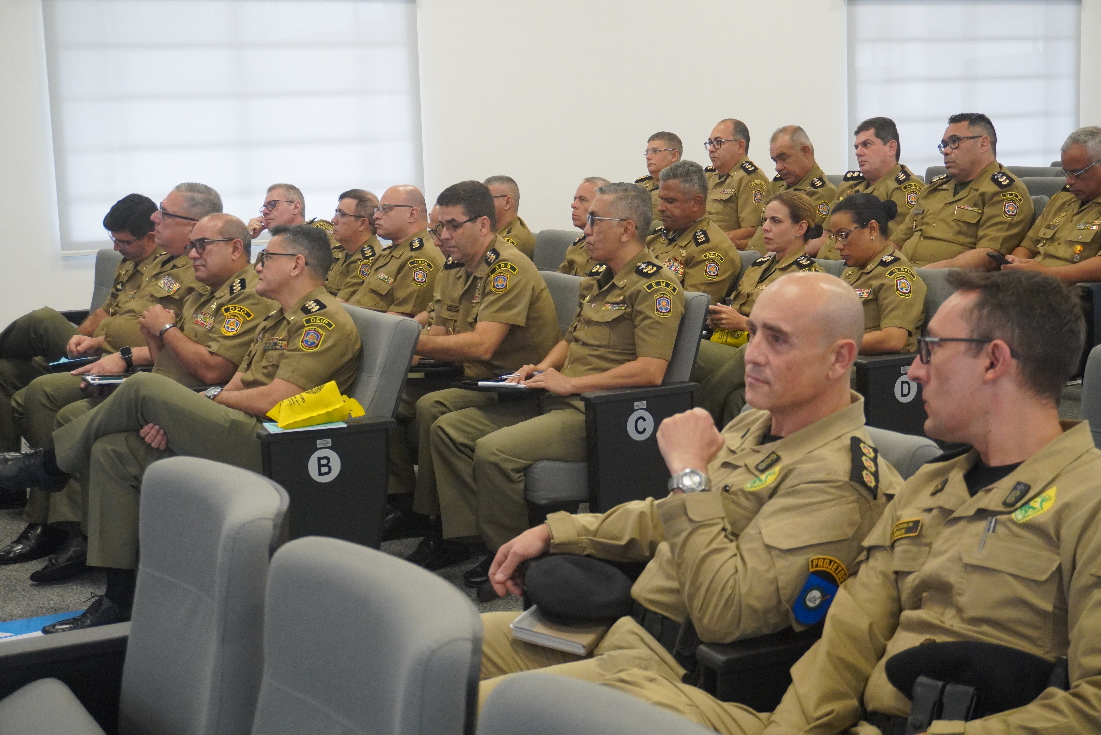 Na sequência, as atividades prosseguiram no Centro de Treinamento da PMPR, sob coordenação do Chefe do Estado-Maior, coronel Eleandro, onde foram apresentadas a estrutura organizacional da segurança pública do Paraná, o organograma institucional da PMPR, dados atualizados de segurança pública e os principais programas e estratégias operacionais desenvolvidos pela Corporação. O encontro também promoveu a troca de experiências e boas práticas entre as instituições militares estaduais.