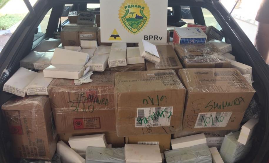 A equipe estava em operação de fiscalização, por volta das 13h15, quando abordou um carro GM/Kadett, de cor cinza, com placas de Paiçandu (PR). Dentro do veículo os policiais encontraram, após vistoria, peças variadas de automóveis, de motocicleta, de aparelhos ortodônticos e de produtos eletrônicos, além de brinquedos e suplementos.