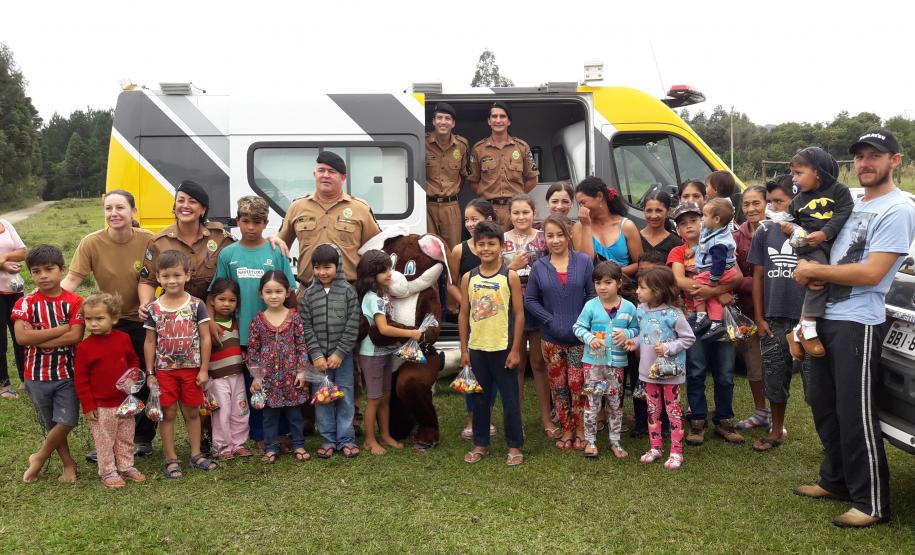 Polícia Militar distribui kits de chocolates para aproximadamente 320 crianças da zona rural da Lapa 02/04/2018 - 15:00