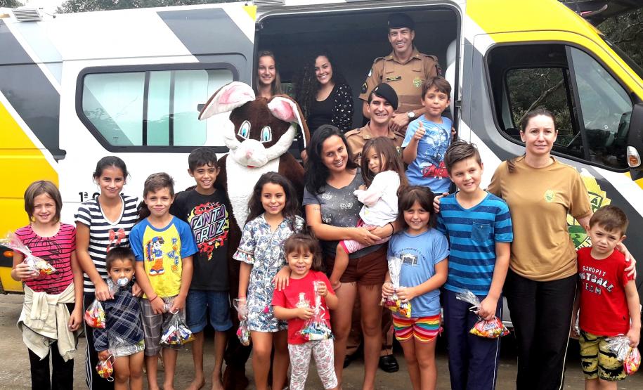 Policiais militares da 1ª Companhia Independente de Polícia Militar (1ª CIPM), pertencentes ao 4º Comando Regional da PM (4º CRPM), arrecadaram chocolates que foram doados para aproximadamente 320 crianças moradoras da zona rural da Lapa (PR), no Sudeste do estado. A entrega foi feita no sábado (31/03).