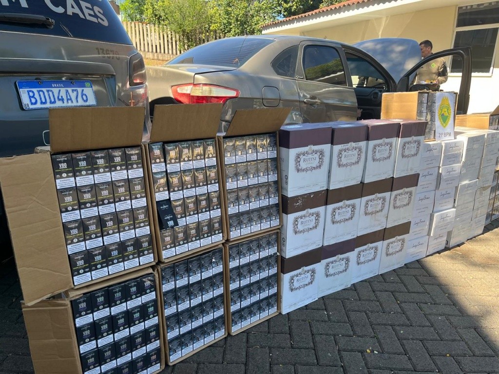 Após informações de que veículos transportando contrabando estariam se deslocando para a cidade, as equipes iniciaram buscas e localizaram um automóvel em alta velocidade, aparentemente carregado. Durante a abordagem, foi constatado que o veículo transportava grande quantidade de vaporizadores (pods/vapers), 192 garrafas de vinho de origem argentina e um rádio comunicador.