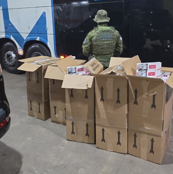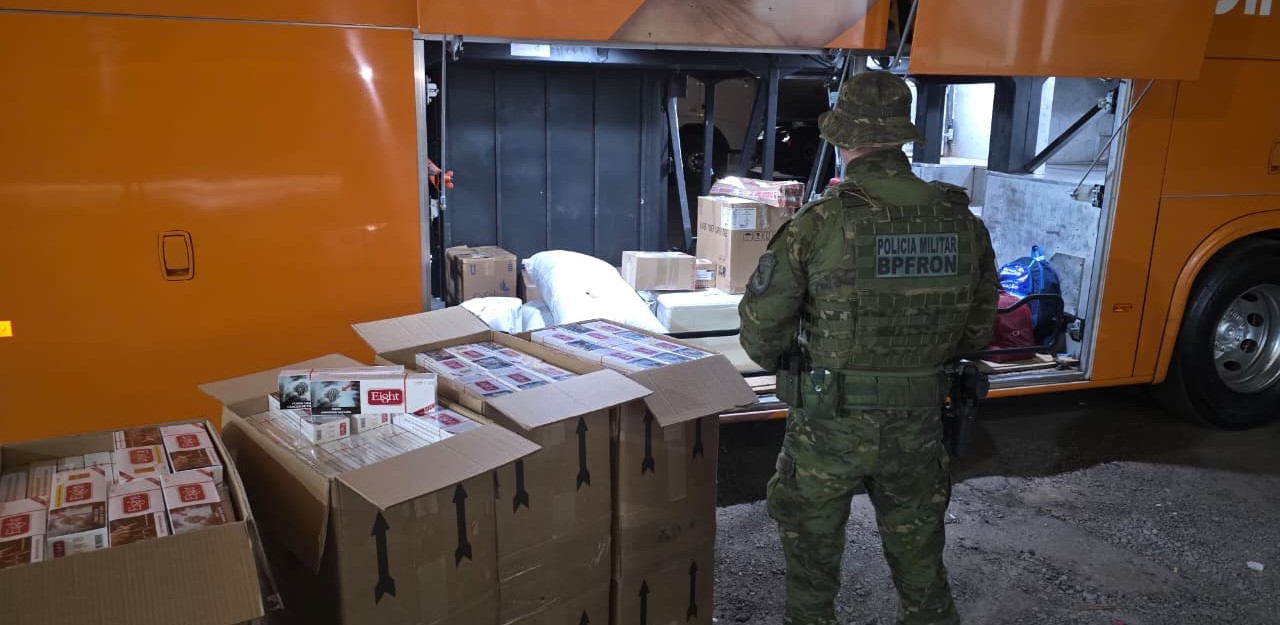 Durante a atividade policial, as equipes da PMPR abordaram dois ônibus interestaduais, que faziam a linha Dourados (MS) – Londrina (PR). No decorrer da fiscalização, foram localizados nove volumes contendo cigarros de origem paraguaia, totalizando 1.152 pacotes. Deste total, 640 pacotes estavam armazenados no bagageiro de um dos ônibus e outros 512 no segundo veículo.