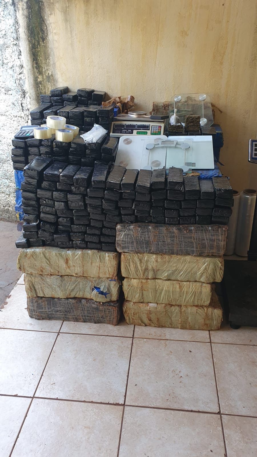 Prosseguindo na diligência, os policiais encontraram no interior da residência vários fardos e tabletes de maconha, totalizando 1,24 tonelada da droga. Além disso, localizaram balança, embalagens, produtos químicos e diversos outros utensílios utilizados na manipulação de entorpecentes.