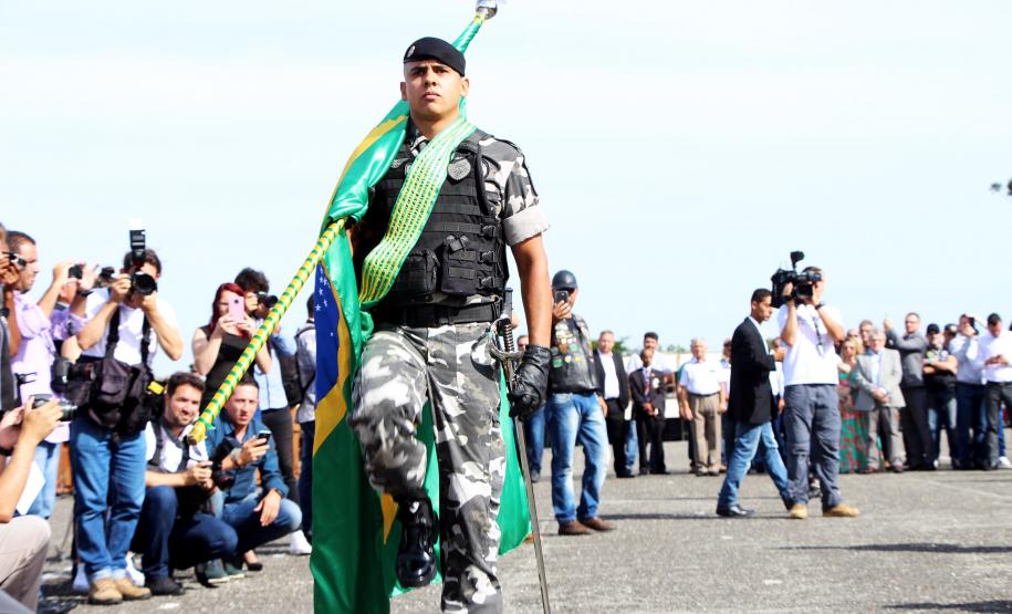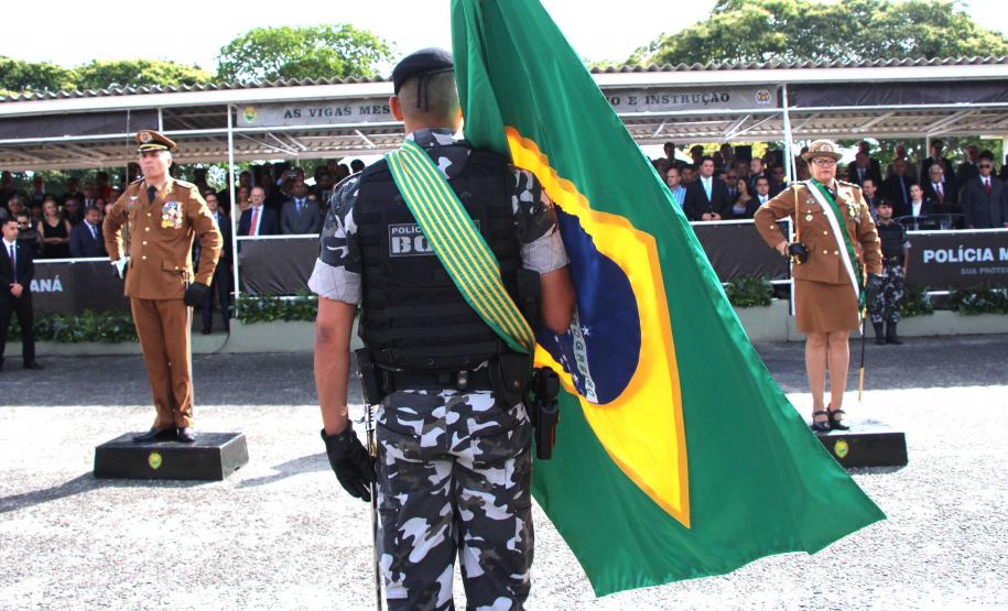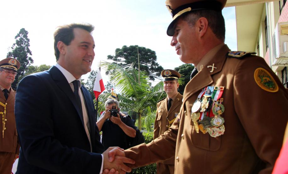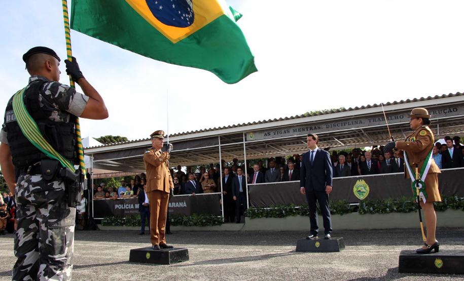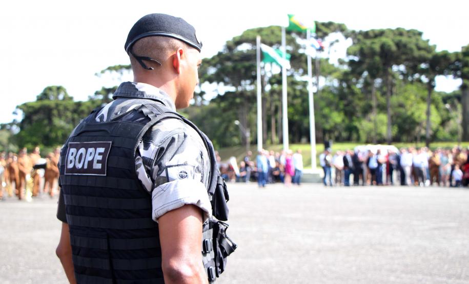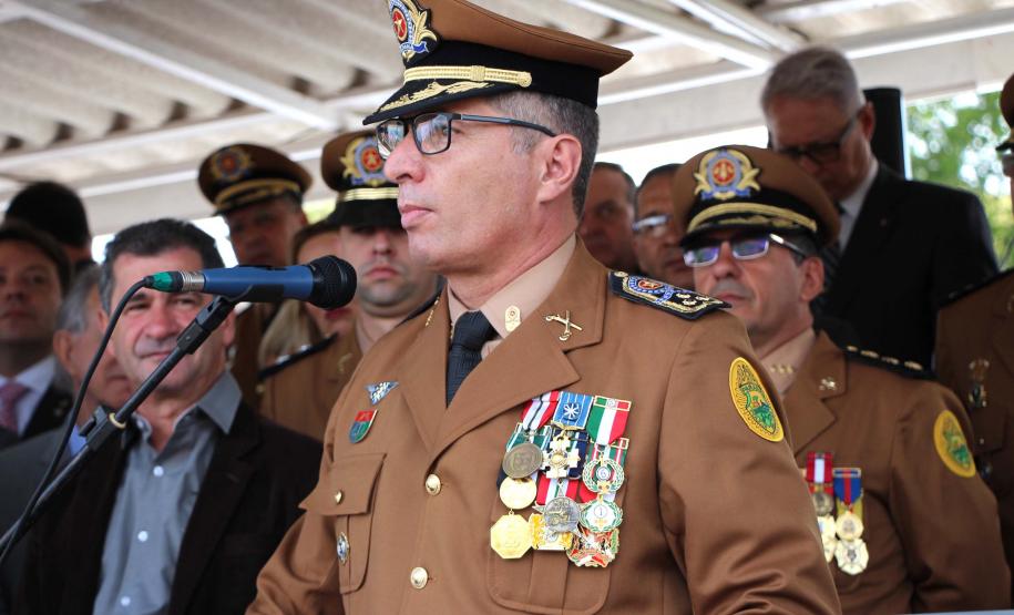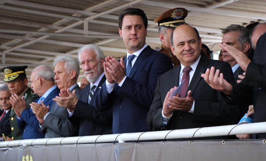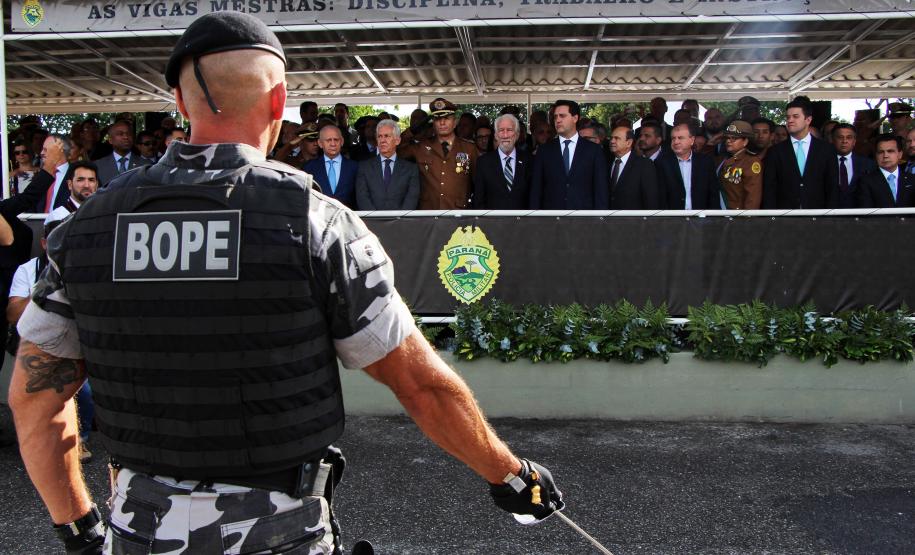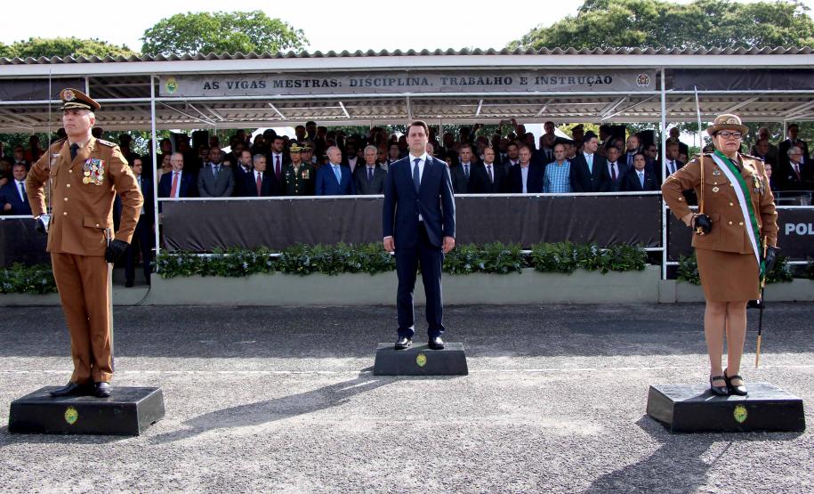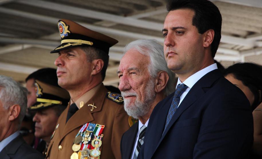 PRESENÇAS – A cerimônia foi presidida pelo Governador Ratinho Júnior, acompanhado do Comandante da 5ª Região Militar do Exército Brasileiro, general de brigada Alessio de Oliveira da Silva; o Chefe da Casa Civil, Guto Silva; Secretário de Segurança Pública, general Carbonell; o deputado estadual Ademar Traiano, bem como representantes do Poder Judiciário, integrantes do Poder Legislativo e do Poder Executivo. Oficiais e praças da Polícia Militar, do Corpo de Bombeiros também prestigiaram o evento.