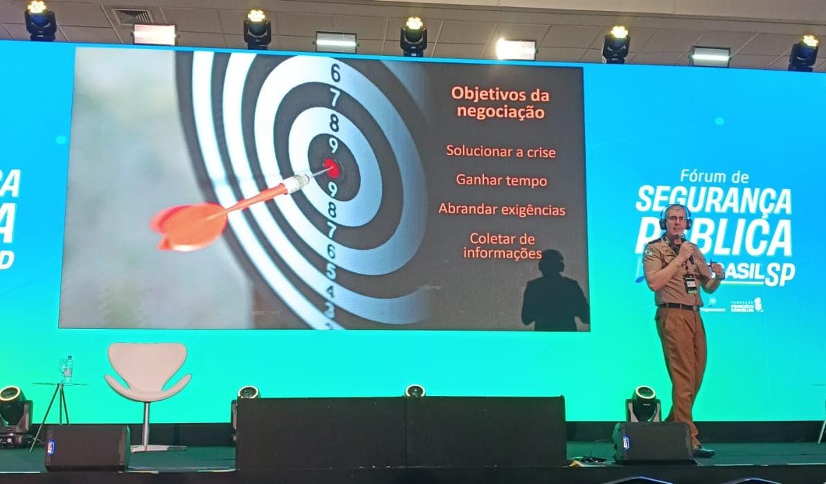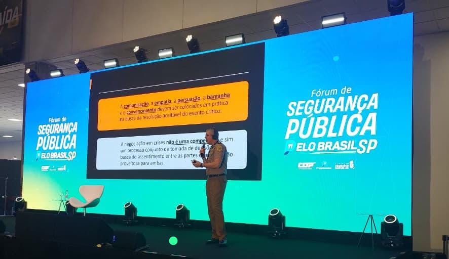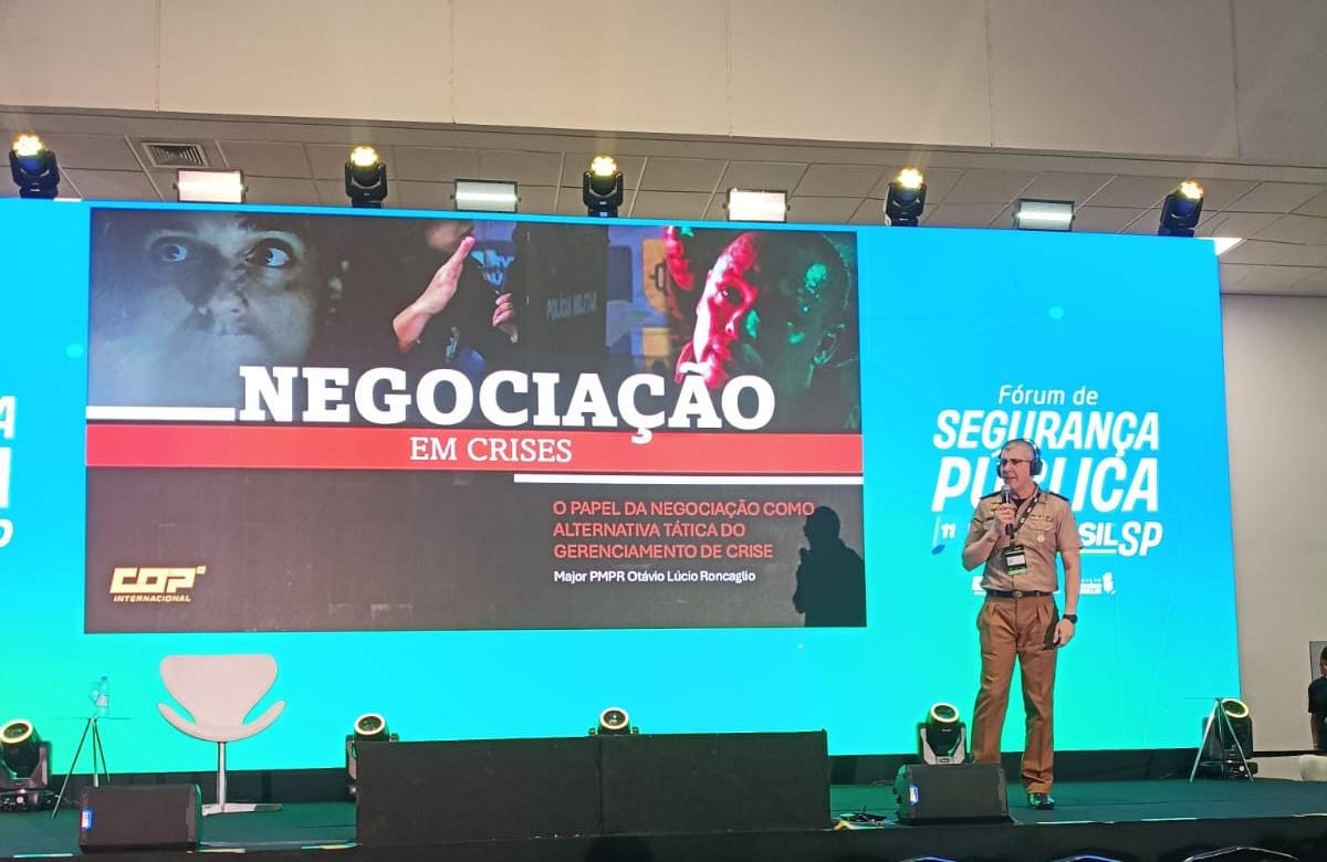 A PMPR também foi representada pelo major Otavio Lúcio Roncaglio, que ministrou uma palestra com o tema “O papel da negociação como alternativa tática no gerenciamento de crise”. A participação evidencia a importância da troca de conhecimentos entre as forças policiais e ressalta o valor do reconhecimento aos policiais militares que se dedicam à produção de conhecimento e aprimoramento de técnicas dentro da corporação.